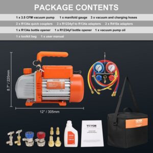 – Meet Refrigeration Repair Needs: The BENTISM ac vacuum pump and gauge set are widely used for automotive refrigeration maintenance and HVAC repair, suitable for R1234yf, and other refrigerants. Package Content: 1 x Manifold Gauge Set, 1 x Three Colors Hose, 2 x R1234yf Adapter, 1 x Bottle Opener, 1 x Carry Bag, 1 x 250ml Bottle of Vacuum Pump Oil.