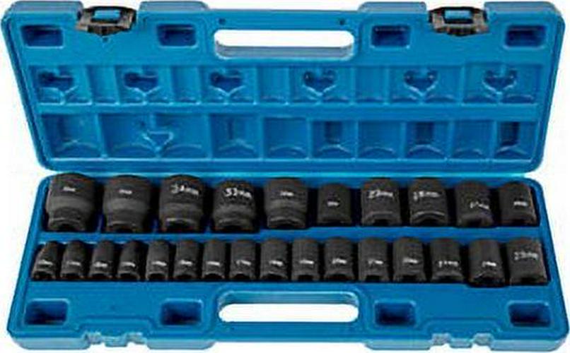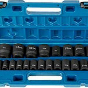 – 26 SOCKETS INCLUDED – This effort-saving 1/2 inches drive impact socket set comes with 26 shallow impact drive sockets: 10mm, 11mm, 12mm, 13mm, 14mm, 15mm, 16mm, 17mm, 18mm, 19mm, 20mm, 21mm, 22mm, 23mm, 24mm, 25mm, 26mm, 27mm, 28mm, 29mm, 30mm, 32mm, 33mm, 34mm, 35mm, 36mm.