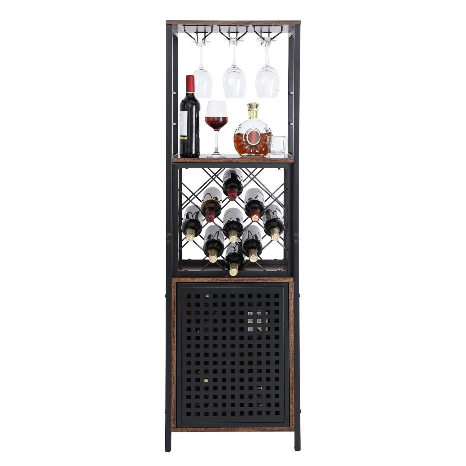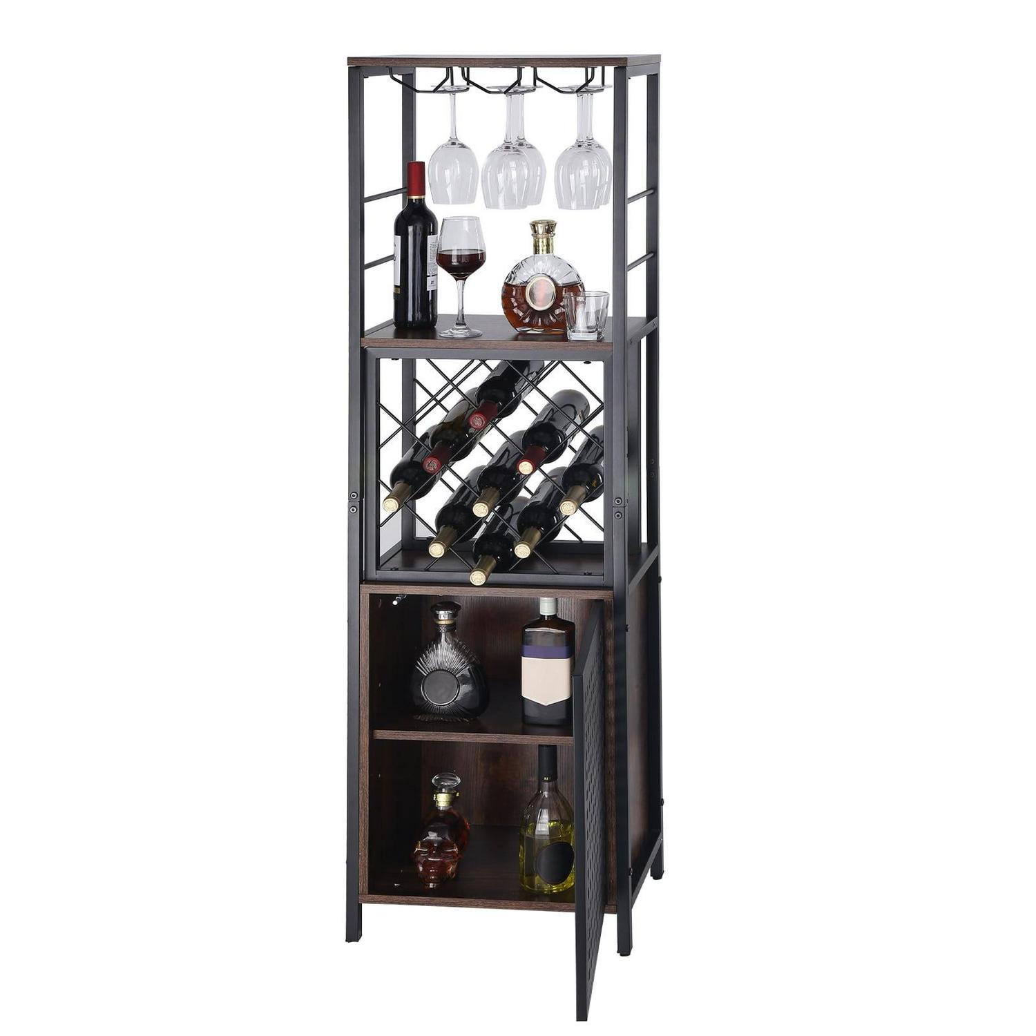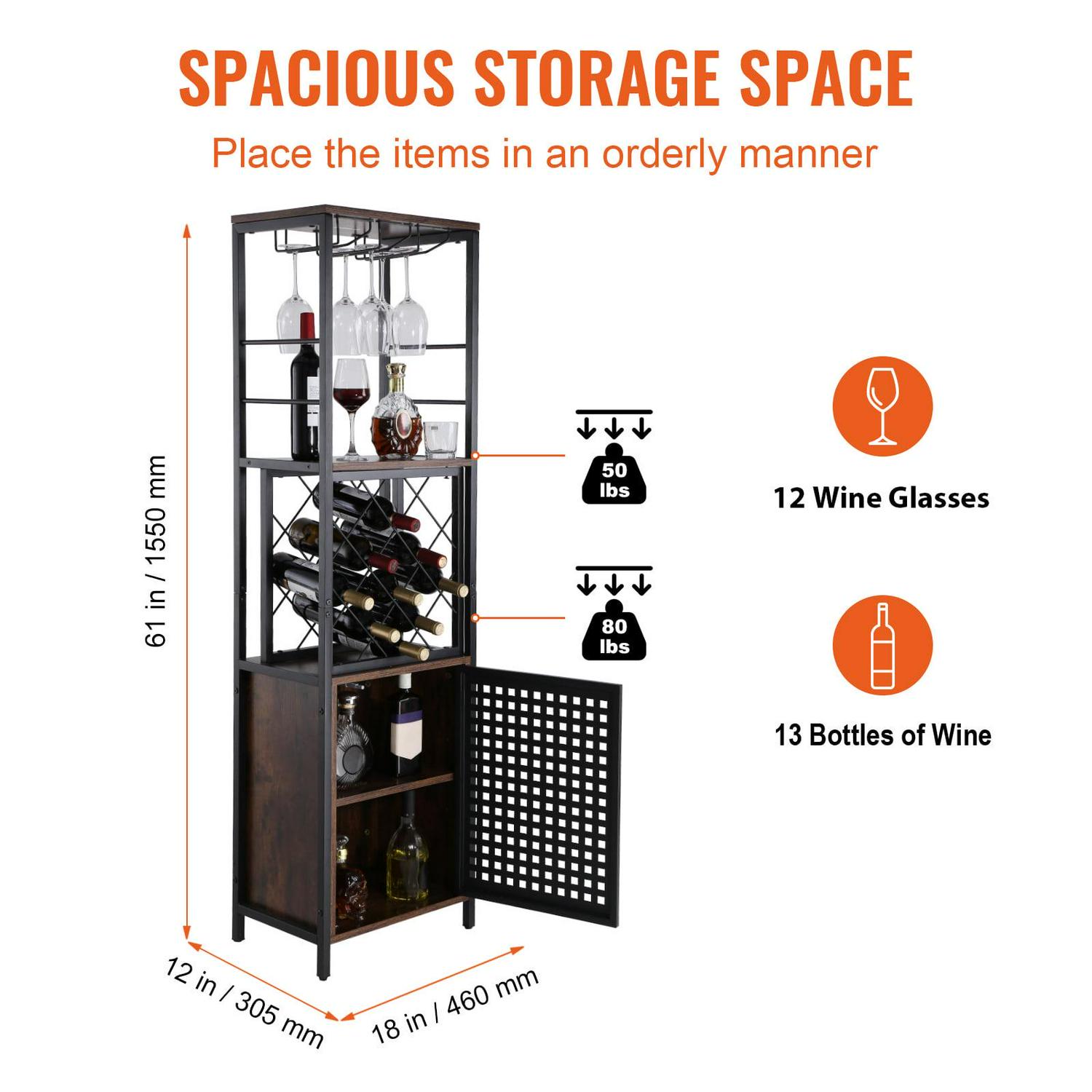 – More Space for You: Measures 18x12x61 inches. This industrial bar cabinet can fit in various places and hold up to 230 lbs. That is a lot of weight! It has an open storage compartment, a wine rack, and hanging glass storage. Get ready to hold 13 wine bottles and 12 glasses for any special occasion. Cheers to you!
