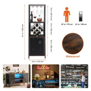 BENTISM Industrial Bar Cabinet 18x12x61 inches Wine Bar Home Table with Wine Rack and Glass Holder