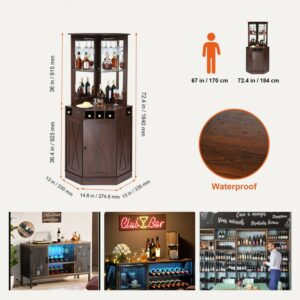 BENTISM Industrial Bar Cabinet 72.4 inch Wine Bar Table with Glass Holder for Liquor and Glass
