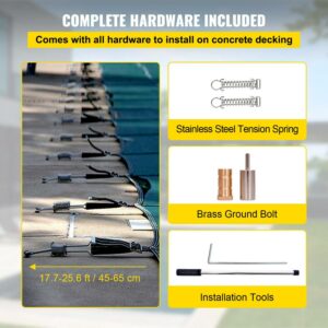 – Complete Hardware Included: The pool cover comes with brass anchors, stainless-steel springs, and installation tools for easy assembly. Drill and tamp style brass anchoring system permanently secures anchors in concrete. The length of the tension spring is adjustable between 13.7-25.6 in / 35-65 cm, according to the size of your swimming pool.Your cover will never get blown away by the wind, so you can be confident that your pool will remain pristine.