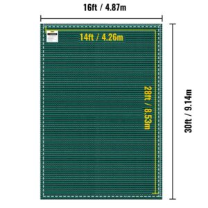 Sturdy Polypropylene & Excellent Permeability & Complete Hardware.The pool cover size is 16 x 30 ft, fitting a 14 x 28 ft swimming pool. In addition, the cover size is 2 ft larger than the pool size, which can perfectly and tightly cover the pool with ease.The swimming pool cover adopts polypropylene material to keep it sturdy and wear-resistant. As a result, it will shield your pool throughout the whole winter without any tear and damage.The pool cover is tightly woven to ensure a long service time. Its edges adopt triple-stitching to avoid fraying and unraveling; moreover, the whole structure is strengthened by double straps to provide extreme support against weight from above.