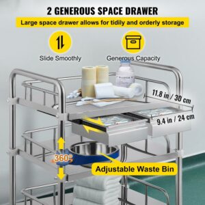 BENTISM Lab Cart Stainless Steel Cart 3 Layers with Refuse Basin 2 Drawers Size L