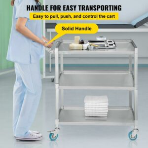 BENTISM Lab Utility Cart, 500 lbs Weight Capacity Rolling Cart, 3 Shelves Mobile Clinic Cart, Sturdy Stainless Steel Frame Lab Trolley, 360A Silent Rolling Wheels w/ Foot Brake, for Lab Clinic Salon