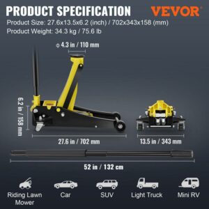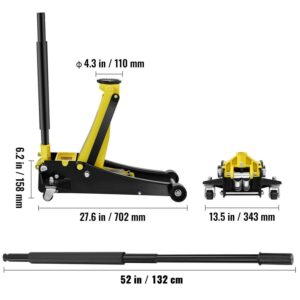 BENTISM Low Profile Floor Jack 3 Ton Heavy Duty Steel Dual Piston Rapid Pump