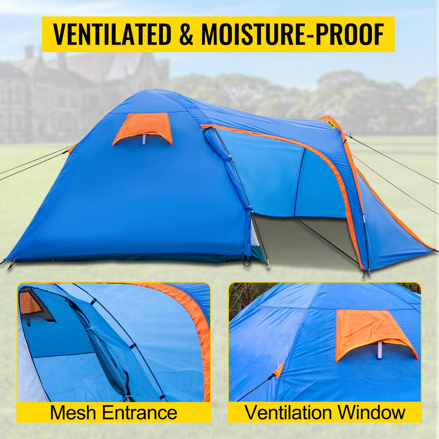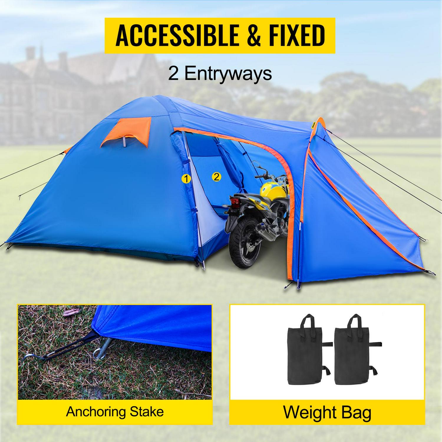 – Easy to Install: The motorcycle tent for camping includes sturdy fiberglass poles and stakes for a swift and stress-free setup. Along with a storage bag, it weighs only 18.7lbs, perfect for family camping, hiking, backpacking, outdoor sports, travel, etc.