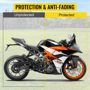 – Waterproof Double Layers: Our motorcycle shelter features 100% waterproof 190T polyester taffeta laminated with polyurethane. 2000 mm water column flysheet provides full coverage, while the heat-seamed thermoplastic coating offers UV protection. The inner tent is free-standing and could be used separately. A separate secure enclosure is attached to the inner tent where you can store your motorbike.