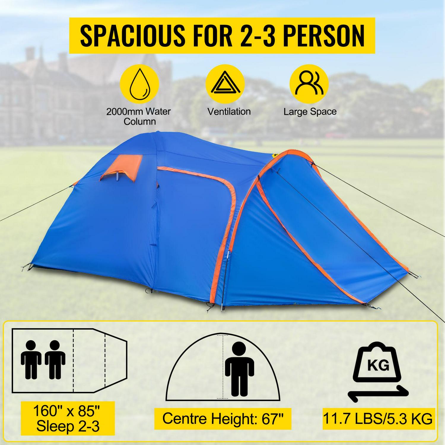 – Spacious Design: Go camping without skimping on space. This motorcycle camping tent is designed with floor size of 159.4″x84.6″ (sleep area: 84.6″x84.6″) and 66.9″ center height for maximum comfort. The large storage space allows 2-3 persons to sleep comfortably, with room for a full-sized motorcycle and equipment.