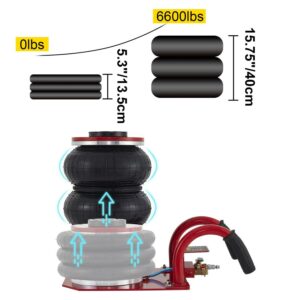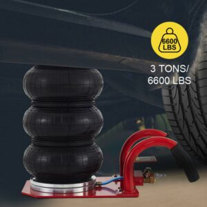 – EASY TO USE – Powerful and very fast to use. The triple bag jack is the easiest and fastest way to make the car lifted. It inflates with compressed air.