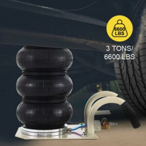 – EASY TO USE – Powerful and very fast to use. The triple bag jack is the easiest and fastest way to make the car lifted. It inflates with compressed air.