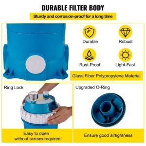 – Durable Filter Housing: The filter housing is made of glass fiber polypropylene material, injection-molded, durable, and corrosion-proof for long service life. At the same time, the ring lock design of the cover can spare the troubles of screws, and you can open the cap and replace the filter element easily. In addition, the imported O-ring can ensure good airtightness.