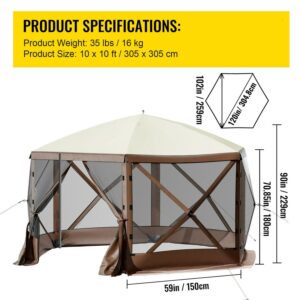 BENTISM Pop-up Camping Gazebo Camping Canopy Shelter 6 Sided 10′ x 10′ Sun Shade