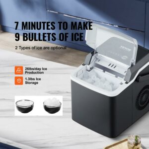 BENTISM Portable Countertop Ice Maker 26lbs/24H Self-Cleaning with Scoop Basket