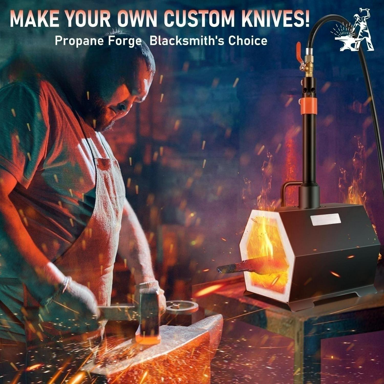 Our blacksmithing forge works well on gold, brass, bronze, magnesium, aluminum, tin, and stainless steel. This forge can quickly reach the optimum forging temperature within 8 minutes, with low fuel consumption.A knife forge is an essential tool for blacksmiths, hobbyists, jewelers & knife makers, and small studios. It is a suitable gift for children because it can cultivate their practical abilities, create unique products, and create a better family atmosphere. You can use it in outdoor places to have an unforgettable time.