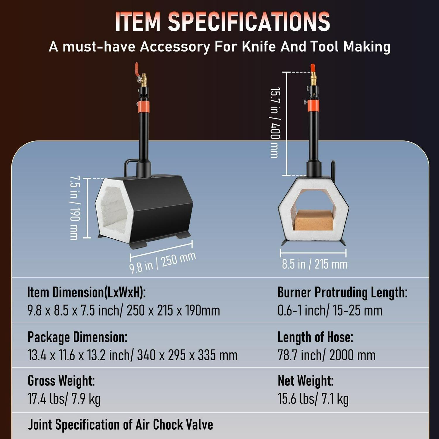 – Integrated Construction: The propane forge is made of high-quality cold rolled plate, and the burner is 45#steel, making it more durable and long-lasting. The blacksmithing gas forge is weldless. It’s a good choice as a gift!