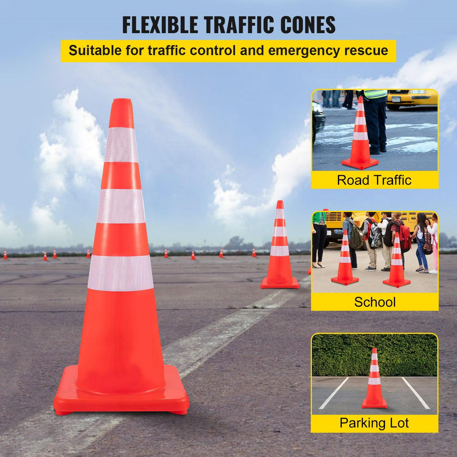 BENTISM Safety Cones Traffic Cones 6 x 36 Orange Reflective Collars Road Cones