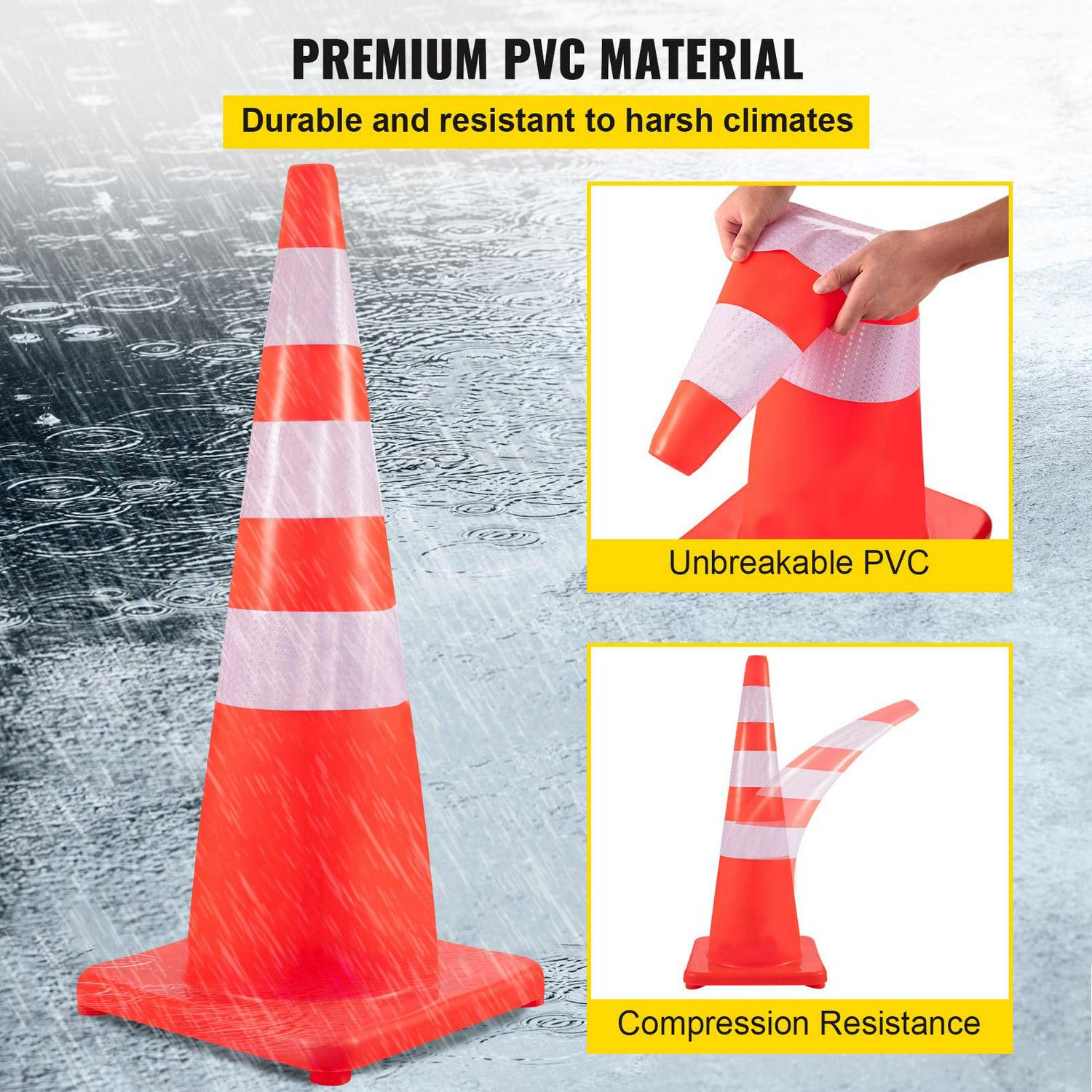 – Superior PVC Material: These 36inch Safety cones are solid and won’t break after being run over by a car because they’re made of PVC material. So this traffic cone is flexible and will resume standard shape immediately.