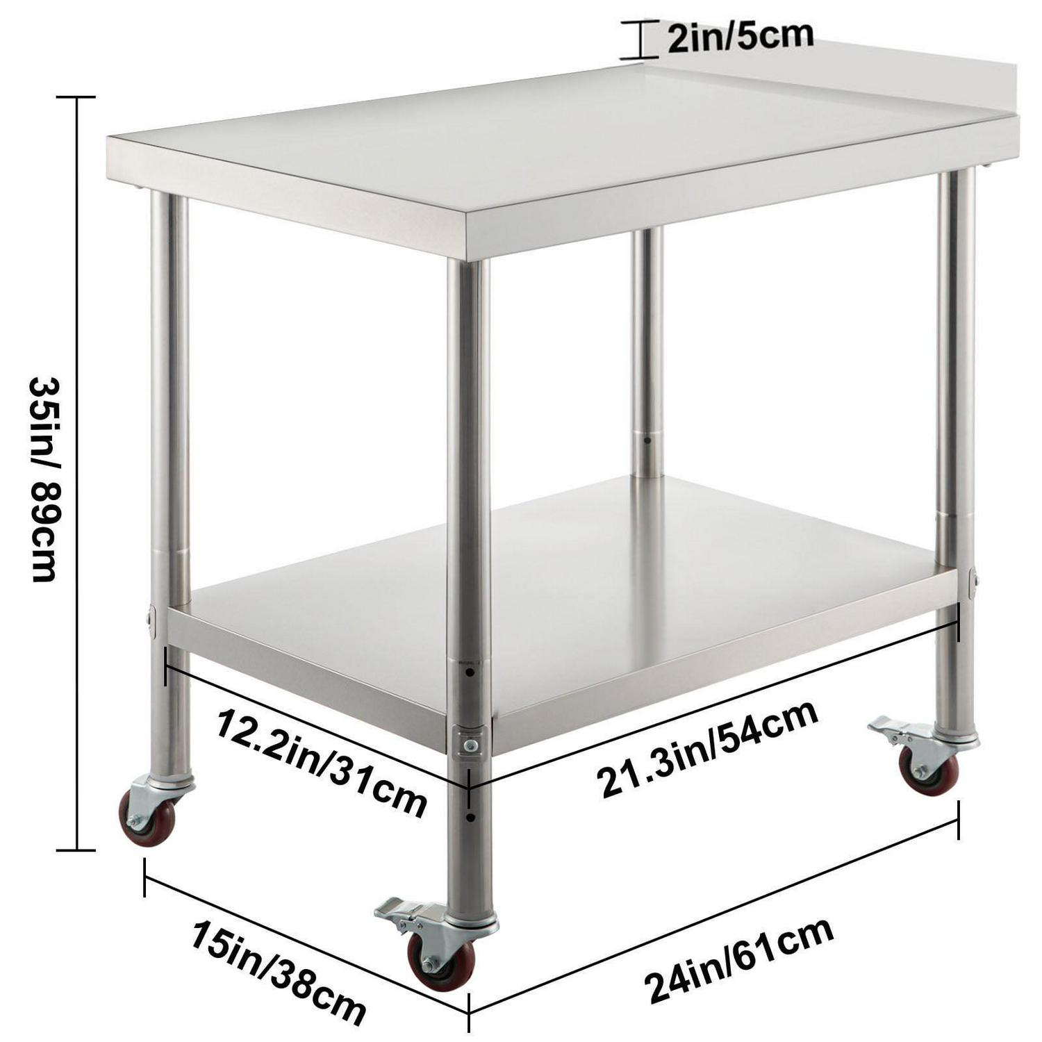– Heavy-Duty Work Table: Our stainless steel prep table has an undershelf for additional storage space. The 24 x 15 x 2.2-inch top shelf can load max. 330lbs items and the 21.3 x 12.2 x 1.8-inch undershelf can load max. 110 lbs items. It s easy for you to store all of your most-used supplies. The 1.9-inch thickened columns feature a triangle support design, which improves the durability and stability of this table.