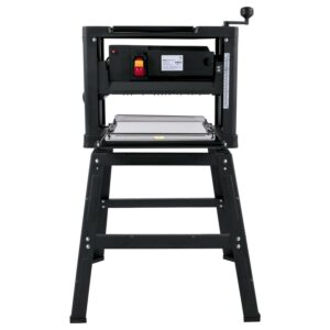 – Heavy-Duty Stand: There is a heavy-duty stand for a more strong fixation of the wood planer. This portable table planer is compact and space-saving with a detachable stand and foldable extension plates. ABS grooves on both sides are designed for easy mobility.