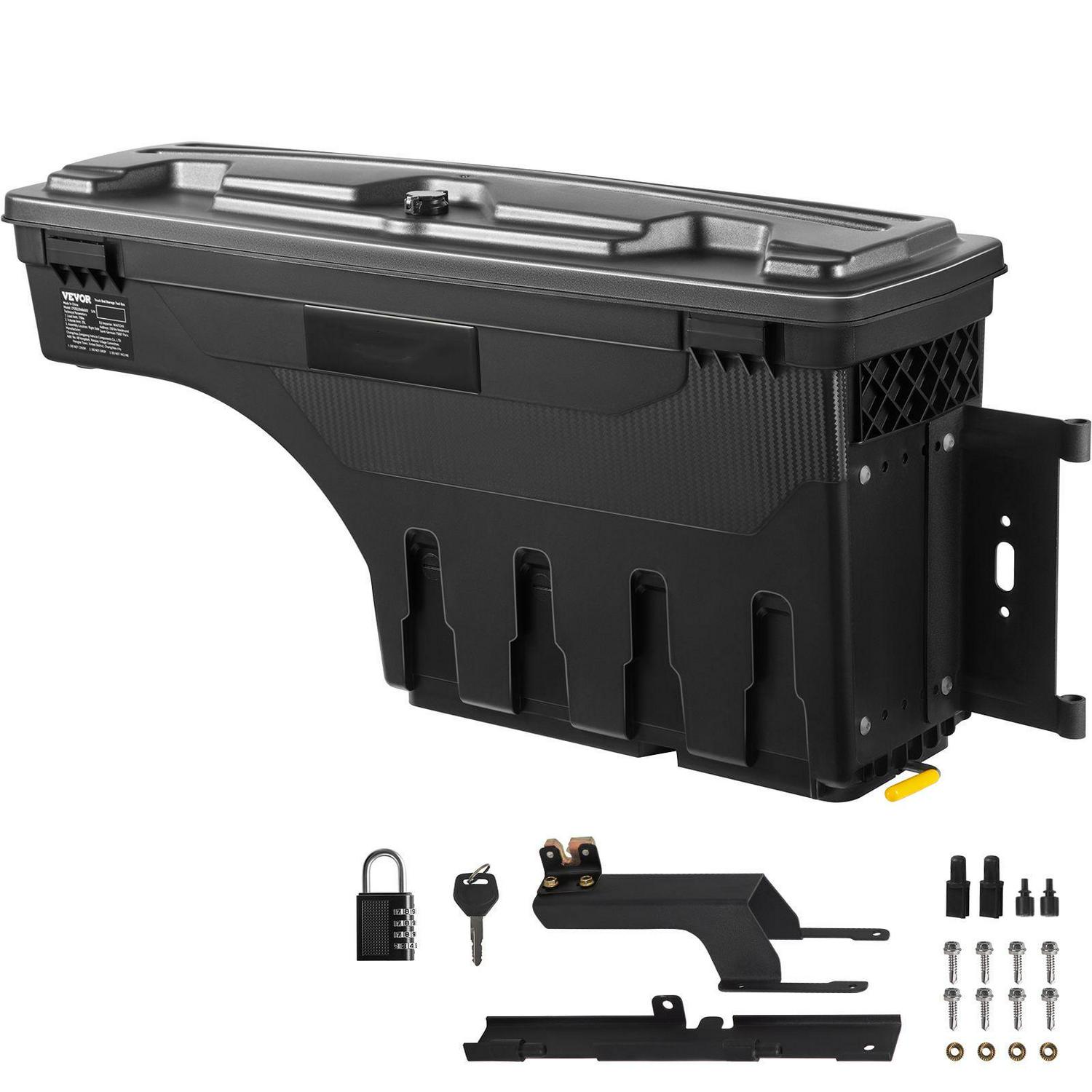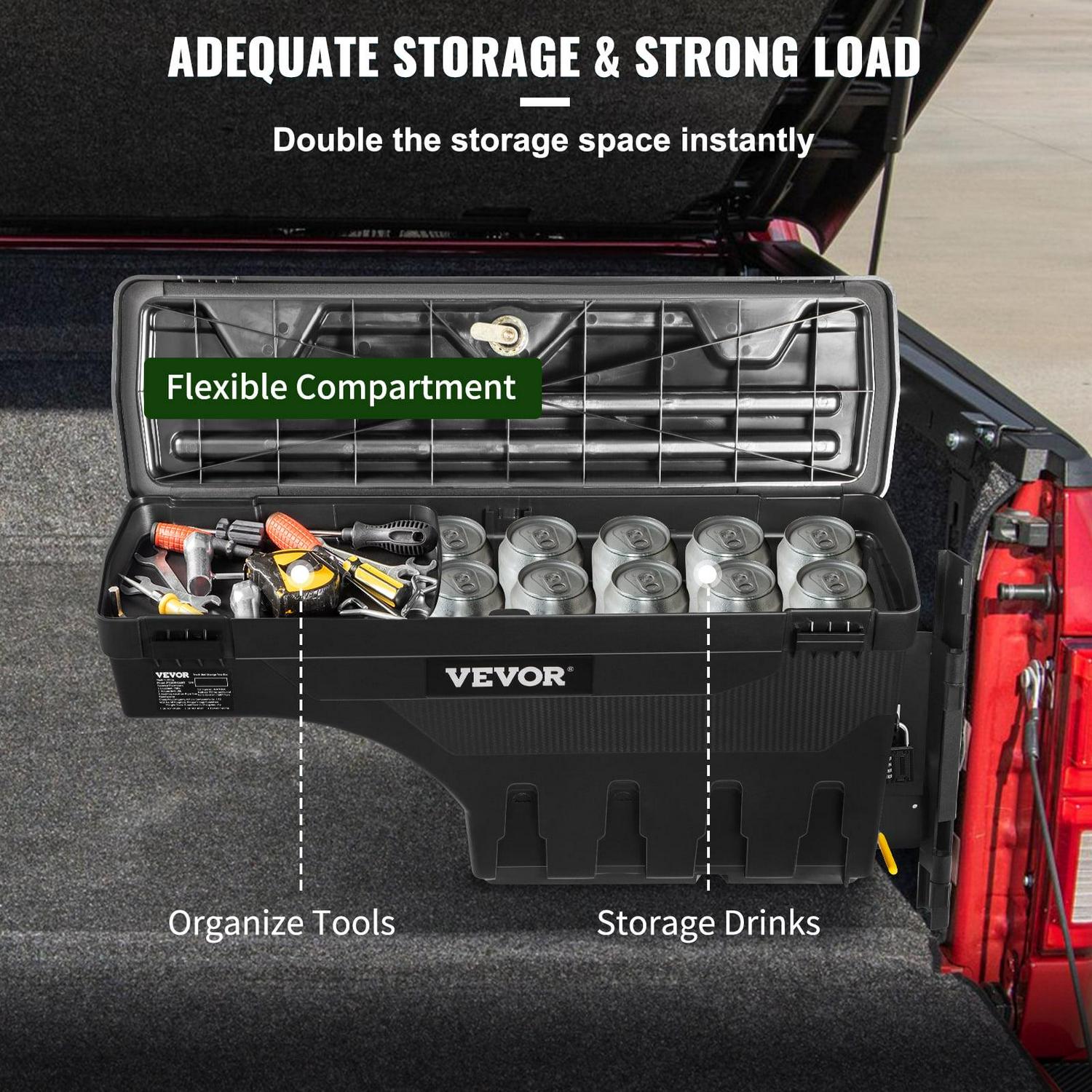 The truck bed storage box can be put on the driver or passenger side, giving you plenty of space for your trip needs. Slides in and out conveniently. There s no need to climb up into the bed like most boxes require.