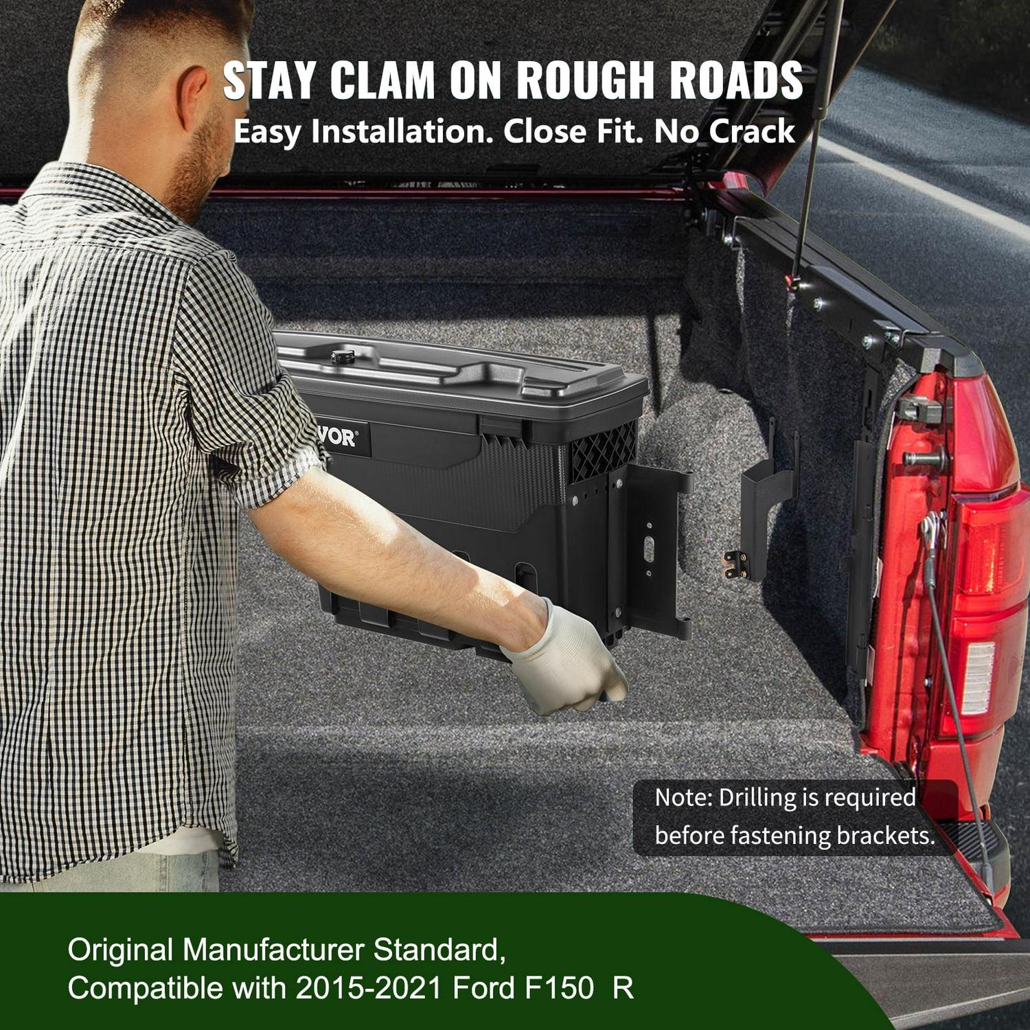 BENTISM Truck Bed Storage Box, Lockable Lid, Waterproof ABS Wheel Well Tool Box 6.6 Gal/20 L with Password Padlock, Compatible with 2015-2020 Ford F150, Passenger Side, Black