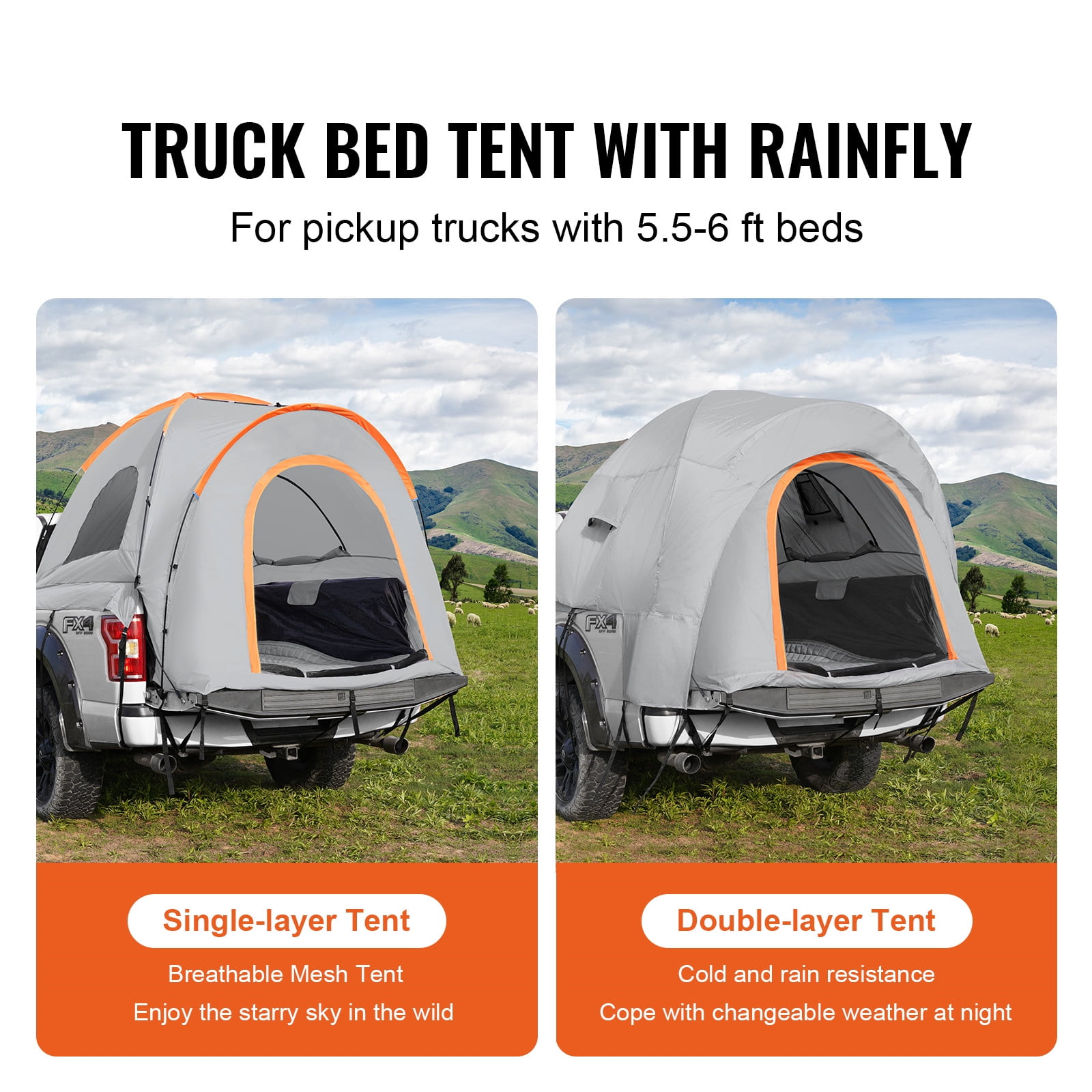 VEVOR Truck Tent 5.5′-6′ Waterproof Spacious Pickup Truck Bed Tent with Rainfly Carry Bag for Camping Traveling Outdoor