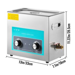 – PREMIUM SUS304 MATERIAL – Tank Size: 6L/1.59 Gal; Ultrasonic Power: 180W; Heating Power: 300W. This ultrasonic cleaner is constructed with sturdy 304 stainless steel, ensuring no water leakage and long service life. A ball-shaped basket is available to decrease collision between sharp items and the tank.