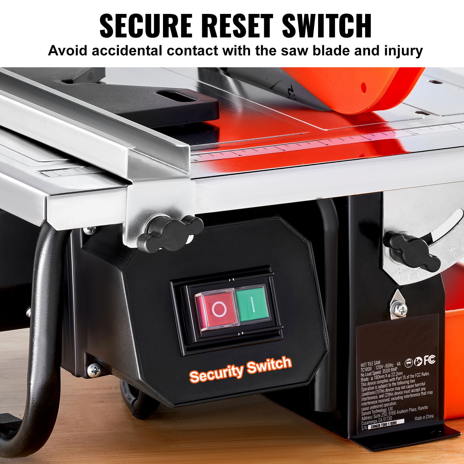 0-45° Angle and Deep Cutting: The BENTISM wet tile saw provides adjustable cutting angles from 0 to 45 degrees (with markings at 0°/22.5°/45° positions). The maximum cutting depth is 1.25 inches / 31 mm. Equipped with a thick 65Mn steel blade and a high-speed 3500 RPM induction motor, it can effortlessly cut various tiles, stones, and ceramics. Dust-Free Operation with Water Reservoir: The water reservoir design of our tile saw dampens dust and debris during cutting, preventing them from spreading into the air. This keeps your workspace clean and reduces respiratory exposure, ensuring better health. And the PP water reservoir is removable. Induction Motor Technology: The wet saw features a high-speed 3500 RPM induction motor with no carbon brushes, relying on electromagnetic induction for energy conversion. This innovative technology minimizes vibration, noise, and delivers impressive starting torque. Enjoy a smooth and quiet operation with exceptional power. This will help you easily tackle various tasks and embrace the future of the energy revolution. Reset Safety Switch: The tile wet saw includes a reset safety switch to prevent accidental activation during sudden power interruptions or restarts. This thoughtful design ensures your safety throughout your work process, allowing you to focus on cutting tasks without any worries. Premium Galvanized Work Surface: Our tile cutter wet saw is crafted from high-quality materials, ensuring durability and longevity. The galvanized work surface provides exceptional rust and scratch resistance, maintaining its polished finish even after prolonged use.