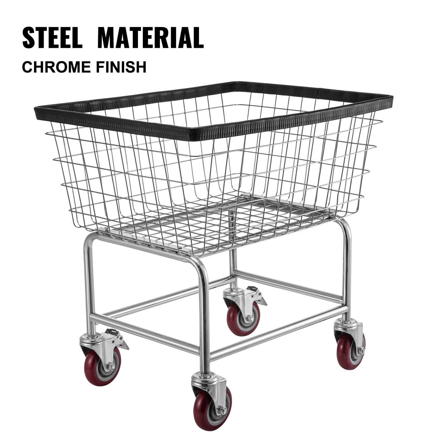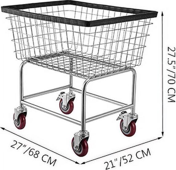 BENTISM Wire Laundry Cart Wire Laundry Basket 2.2 Bushel Heavy Duty w/ 5” Wheels