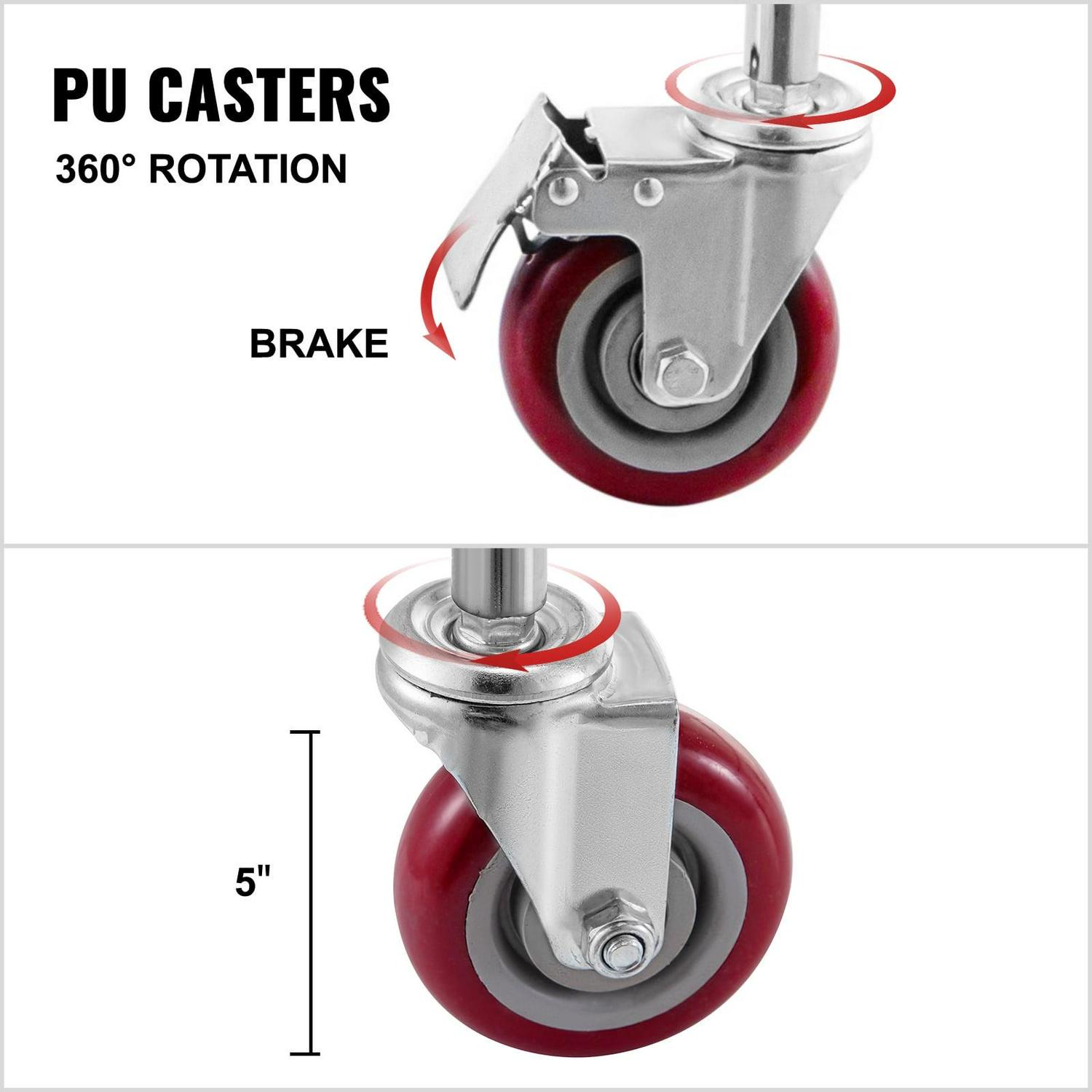 – Threaded Stem Casters: Made of friction-reducing PP materials to protect your floor, 5” swivel casters with brakes is for great stability.