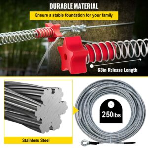– Stainless Steel Zip line: Our 160-foot zipline kits for backyard is made of 1/5-inch heavy-duty steel cable. It can withstand 250 pounds, has durability and wear resistance, and provides you with a solid entertainment foundation. Perfect for children or adults to play in the backyard.