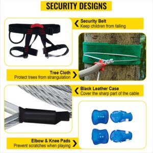 – Considerate Details: The child security seat can ensure security, the tree coat can protect the tree from being hurt by the rope, the foreskin at the sharp part of the rope can prevent being stapped, and a pair of knee pads and elbow pads can keep from being scratched.