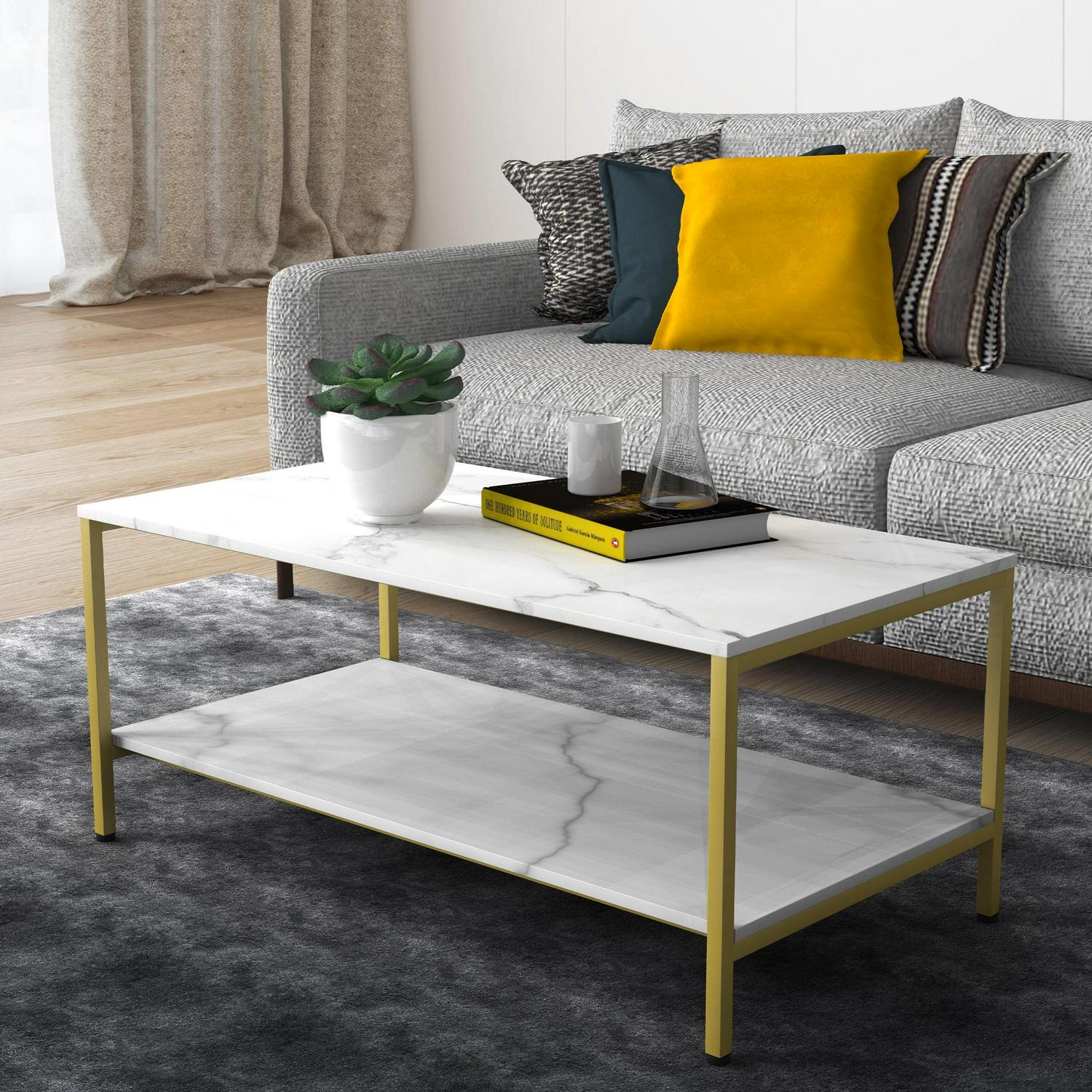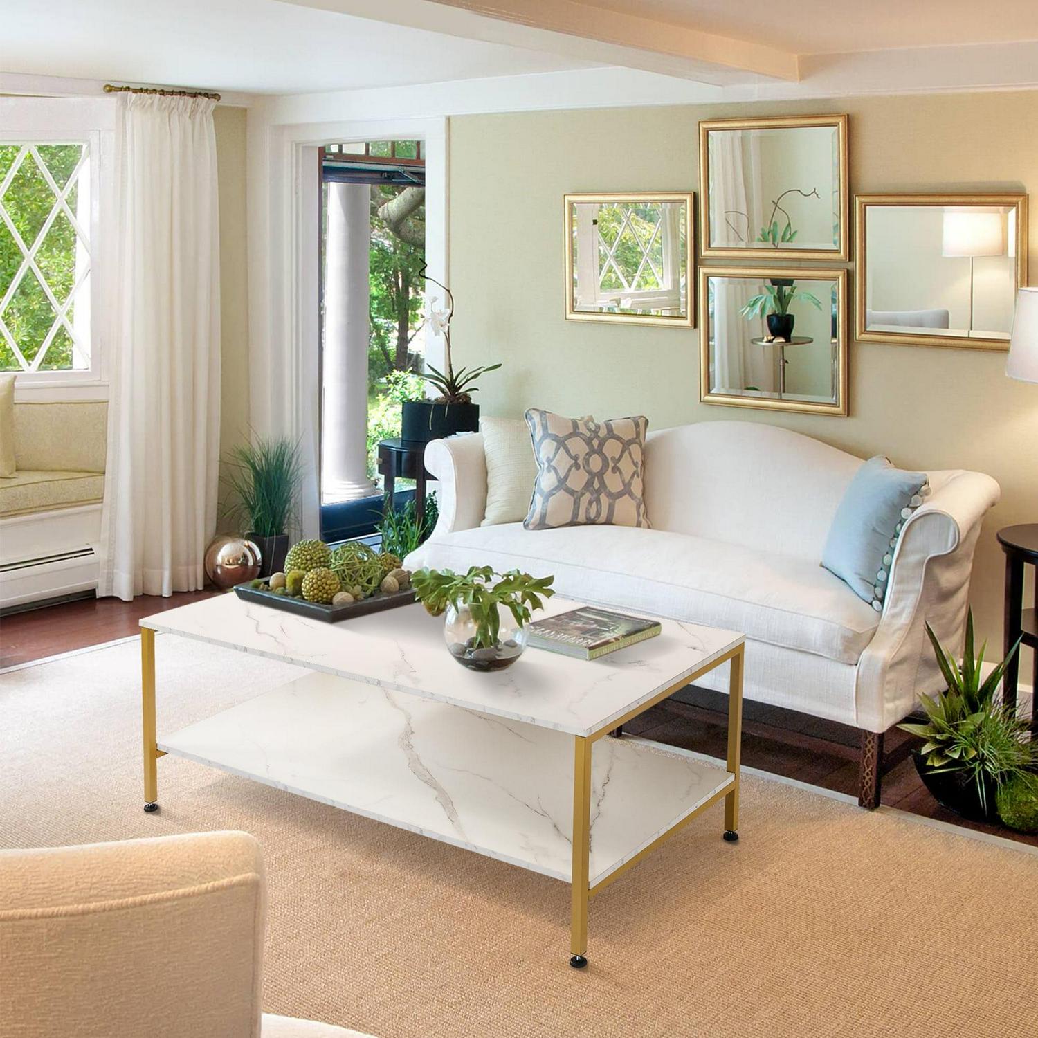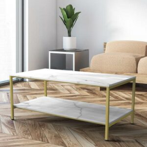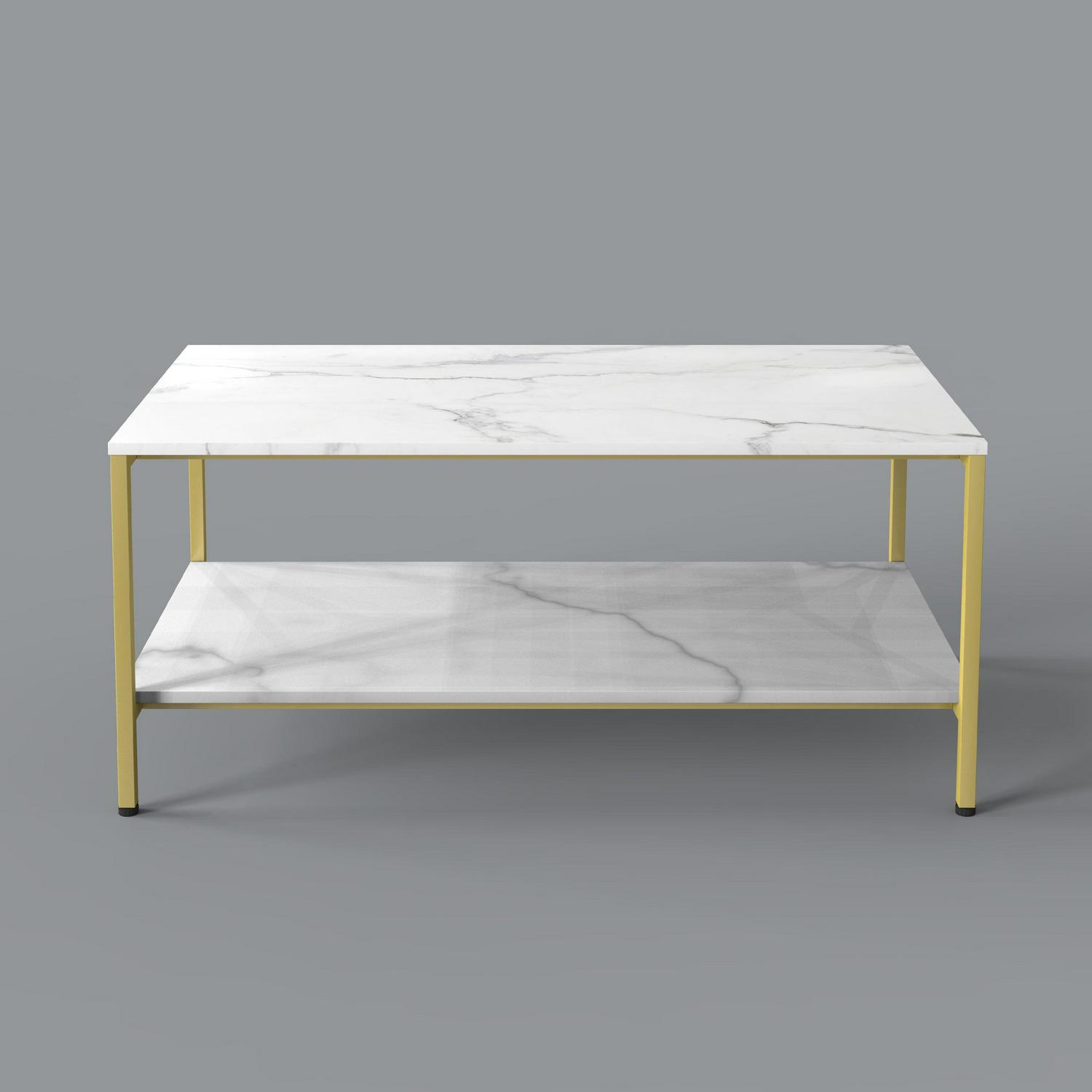 Benton Park Faux Marble Rectangular Coffee Table, Gold Frame
