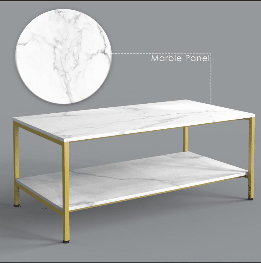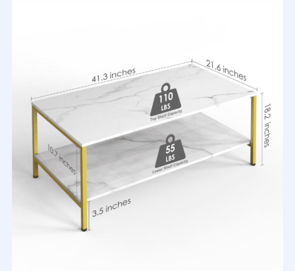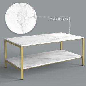 – Easy to maintain:Covered by the imitation marble PVC veneer, this rectangular coffee table is water-resistant.