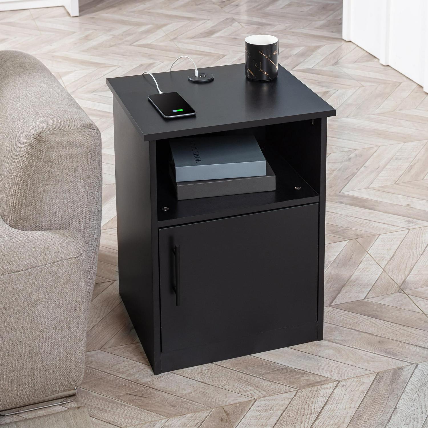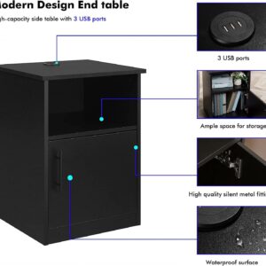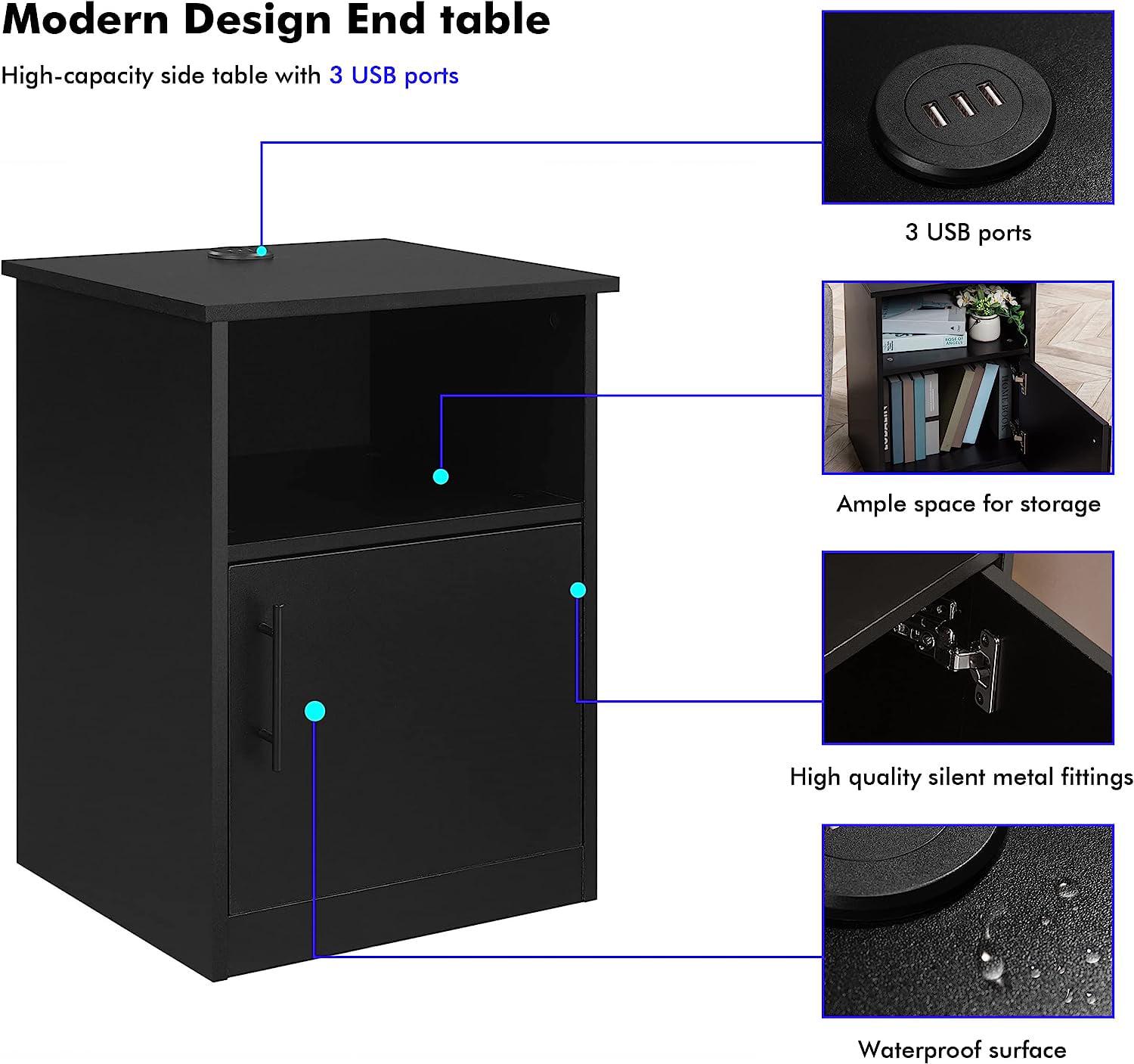 Benton Park Nightstand with Storage, End Side Table with 3 USB Ports for Bedroom, Black