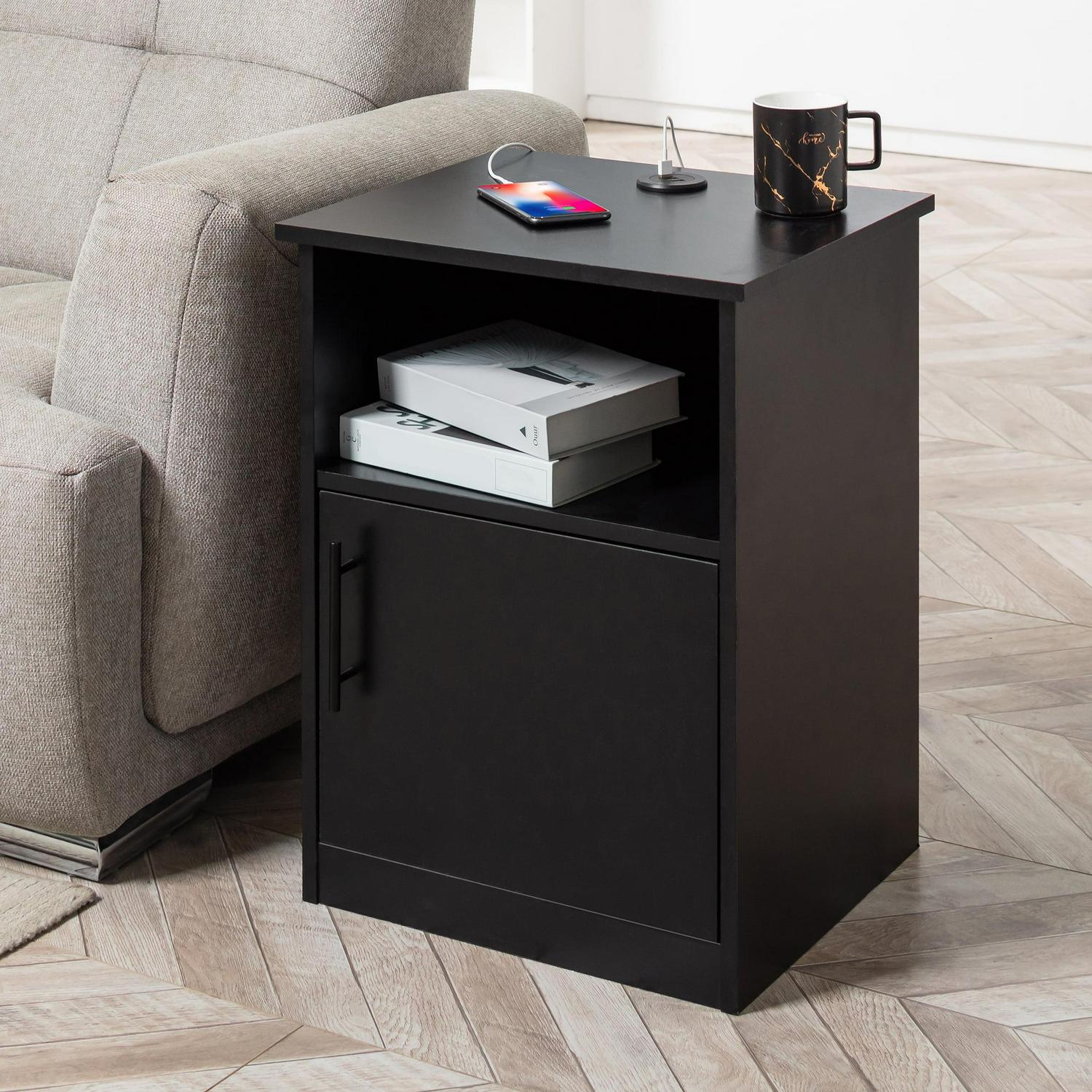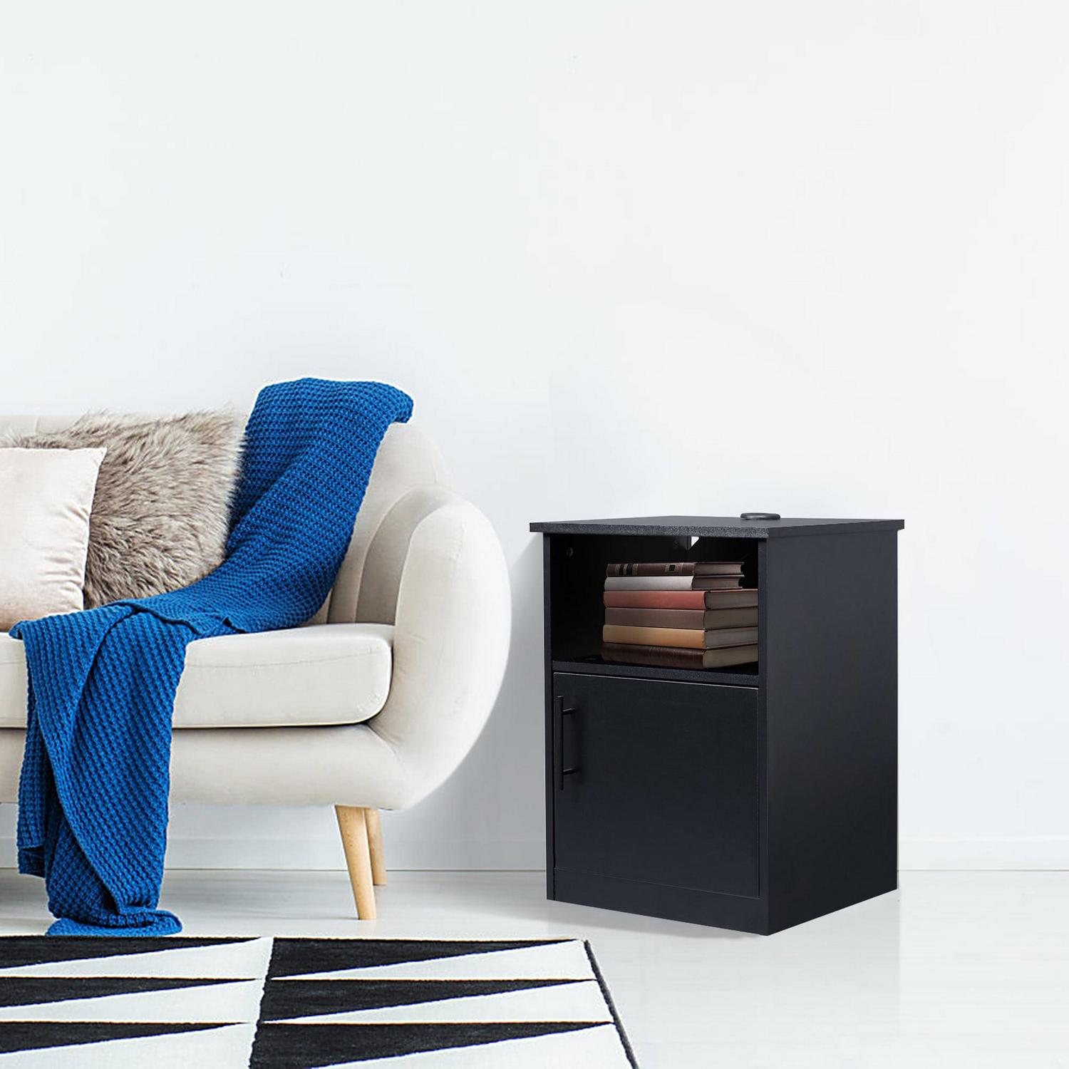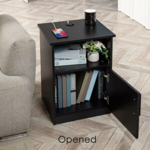 – Ample Storage: Designed with a wide top, an open shelf and a cabinet, these end tables are perfect for storing TV remotes, charging cables, books, magazines, etc.