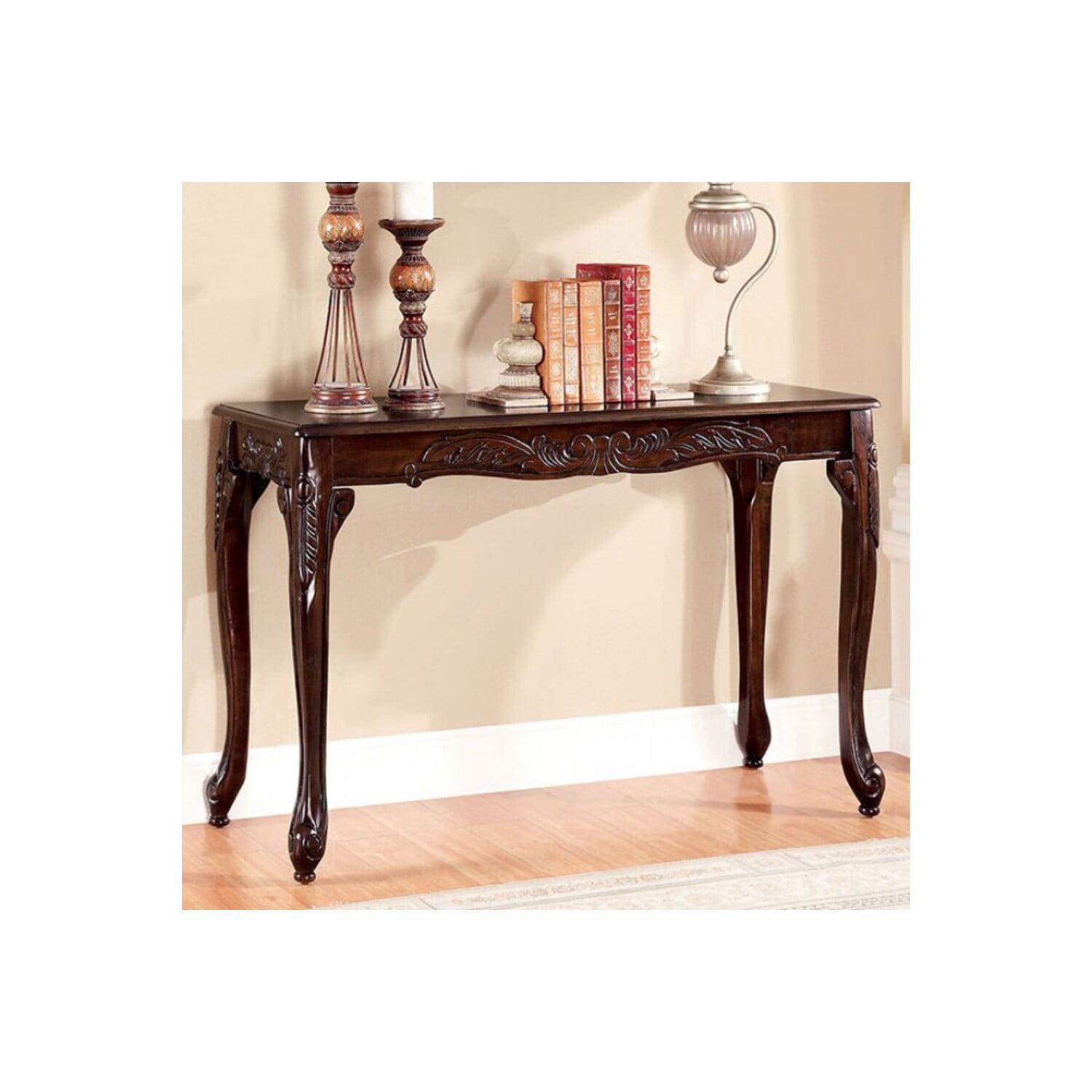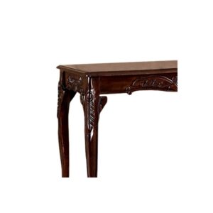 Carved, acanthus leaves and cabriole legs make the Benzara Cheshire Traditional Sofa Table classically beautiful. A rich cherry finish ensures this sofa table will work with your décor. Style it in your entryway, the front hall, or use to anchor your sofa. The top offers space for slender buffet lamps with room left over to decorate however you choose.