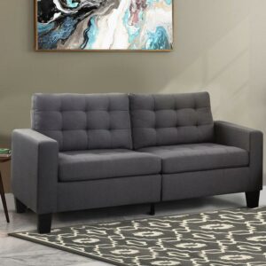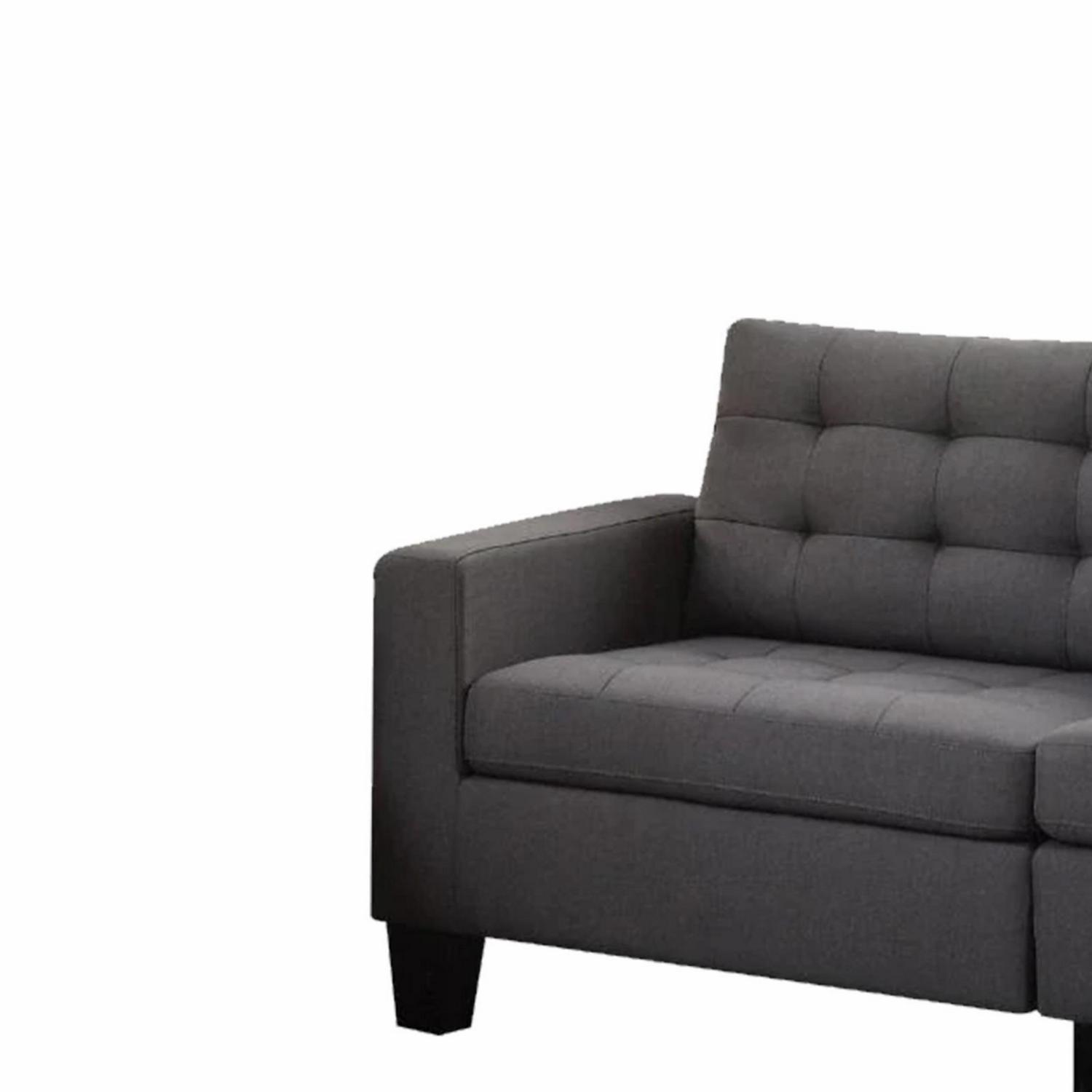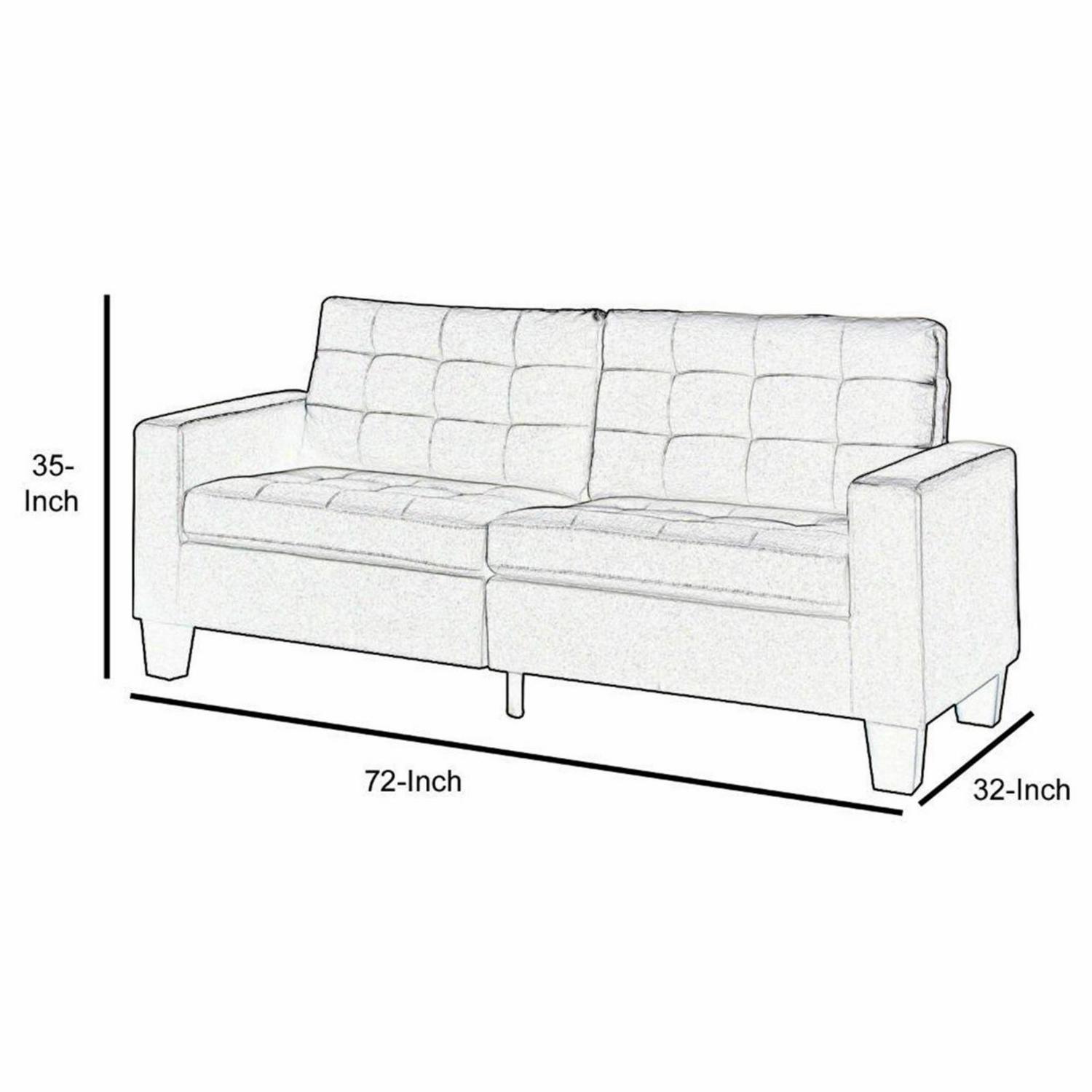 Give your seating area a mod update with the Benzara Dashing Sofa. The sofa has a two-over-two design with boxy cushions dressed up with tufted grid stitching. Sleek track arms and wood block feet complete the fabric sofa.