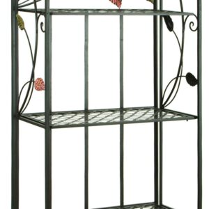 Whether you use the Benzara Indoor/Outdoor Iron Floral and Scroll Bakers Rack for your baked goods in your kitchen or to display dishes in your dining room, this rack stands out as a cozy, farmhouse accent. This bakers rack is made of sturdy, durable iron with a powder-coated black finish for long-lasting use.
