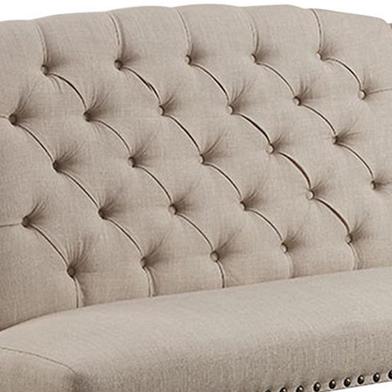A great update to casual seating, this finely designed wingback Bench offers plush seating experience. Designed with the vision of providing comfort, it features linen like fabric upholstered padded seat and deep button tufted high backrest which offers a great posture while seating, accented with nailhead trim details.