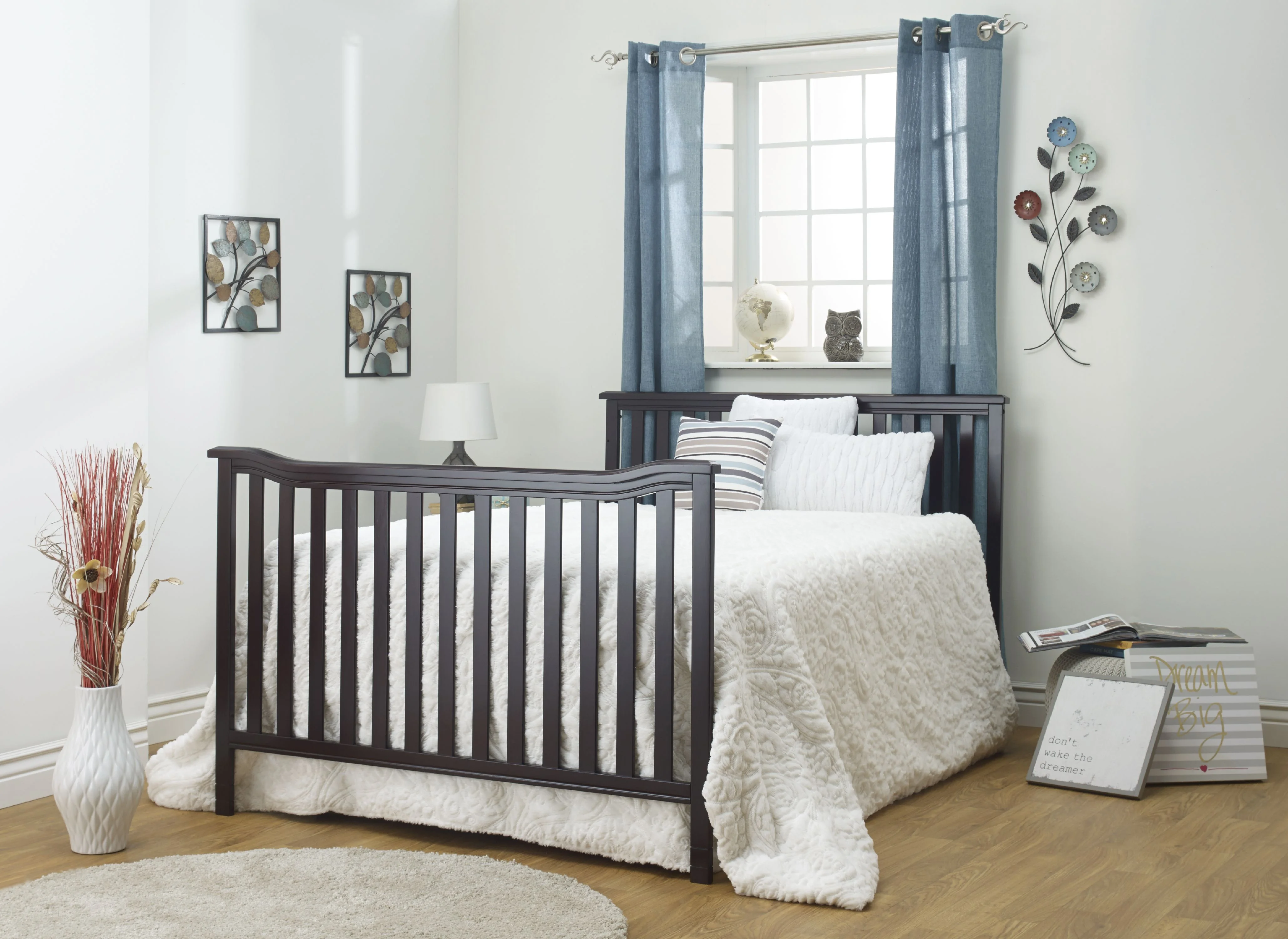 Our Berkley Flat Top Crib is beautifully made and extremely versatile! The details inspired by craftsmanship allow you to coordinate your baby’s room with almost any style. This crib has 3 mattress positions available and is crafted from pine wood. The Berkley Flat Top Crib converts into a toddler bed (Item# 148), day bed and a full size bed (item# 221) which guarantees your child a safe night’s sleep through each stage of their life. Please note that the toddler and adult rails are not included, but can be purchased separately. Our Berkley Flat Top Crib is JPMA certified and meets all ASTM and CPSC safety standards. Coordinate with Berkley 4 Dr or Berkley Double Dresser for a complete room look.