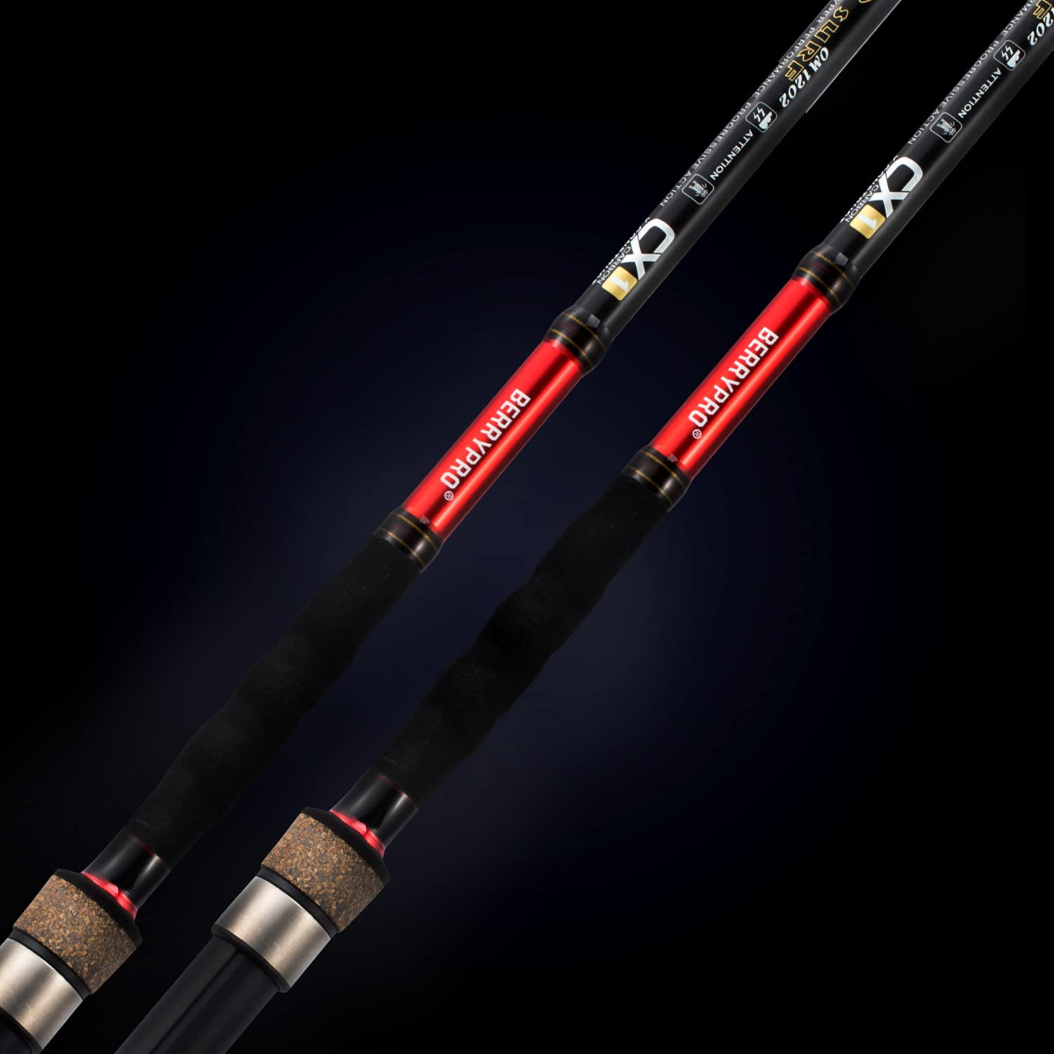 Slim, Light & Durability – Berrypro Surf fishing rods are constructed with full carbon material and also X-Carbon technology blanks which gives the rods incredible sensitivity and power Excellent Performance – Enhanced Stainless steel fishing guide with ceramic ring makes it more smooth.Minimize friction between the line and the guide.The guides are precisely aligned, along the bottom of the spine of the blank,so when make a long cast,the sensitiity will be transferred from the line to the rod and then to your hand perfectly Quality Components- High-strength reel seat, Special Full Non Slip shrink tube design for fore grip and rear grip, and Anti-wear butt cap makes your fishing more comfortable 10′-spinning-2pc Guides: 6+1 Tip Line weight: 12-25lb Lure weight: 3/4-3oz Net weight: 10.4oz