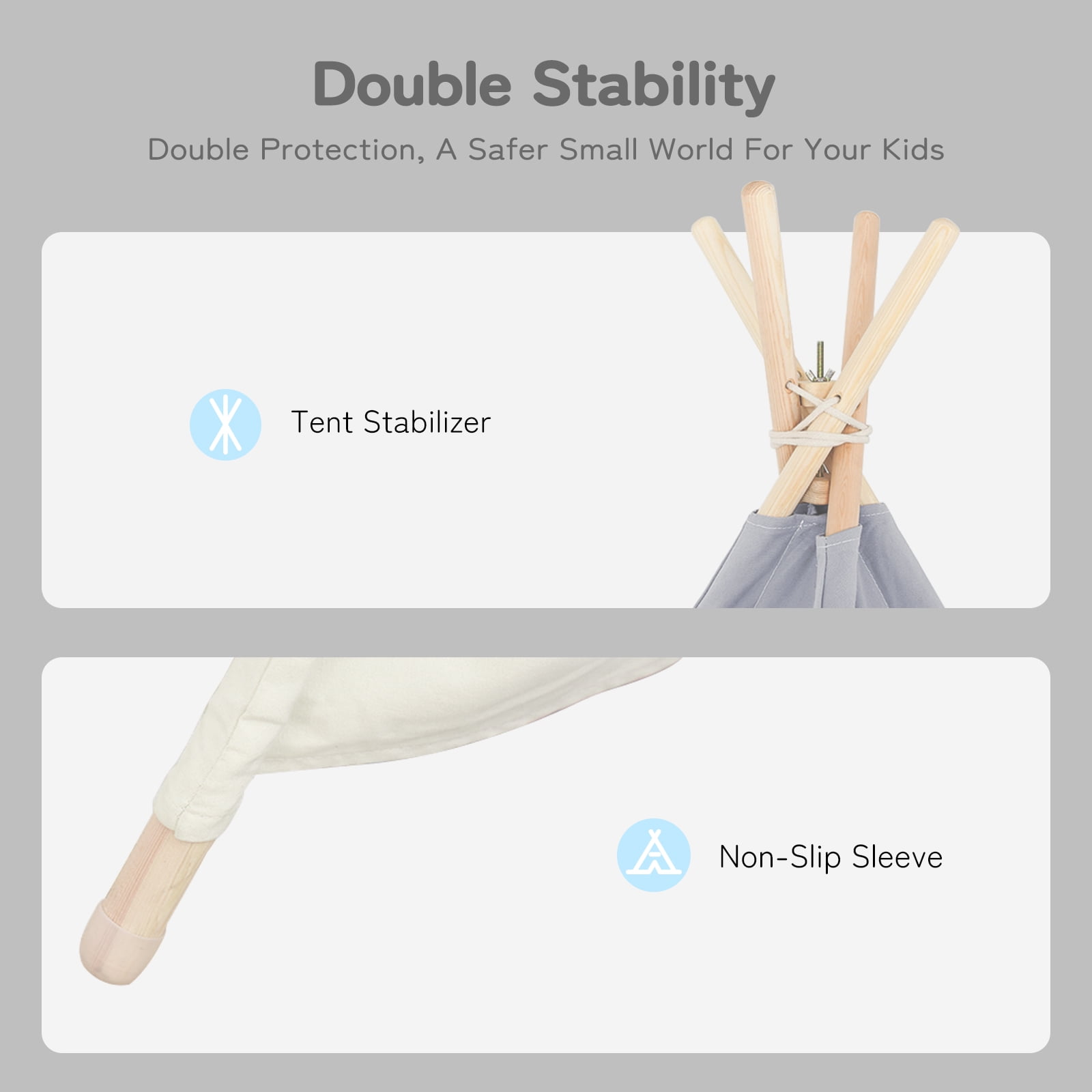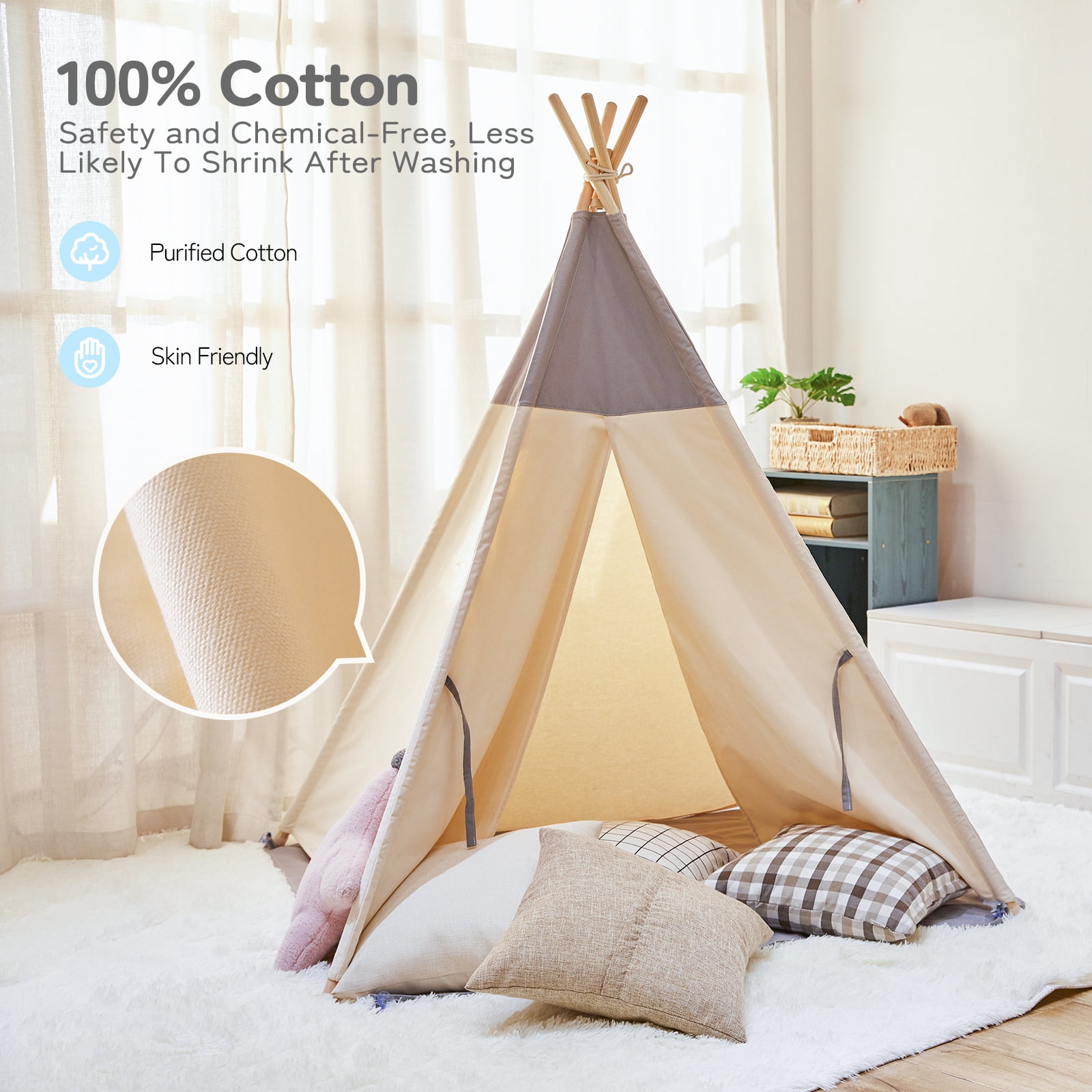 Besrey Teepee Tent for Kids with Light & Mat,Toddler Playhuose Tent for Ages 3+ Girls and Boys,Child Play Tent,Matt Grey