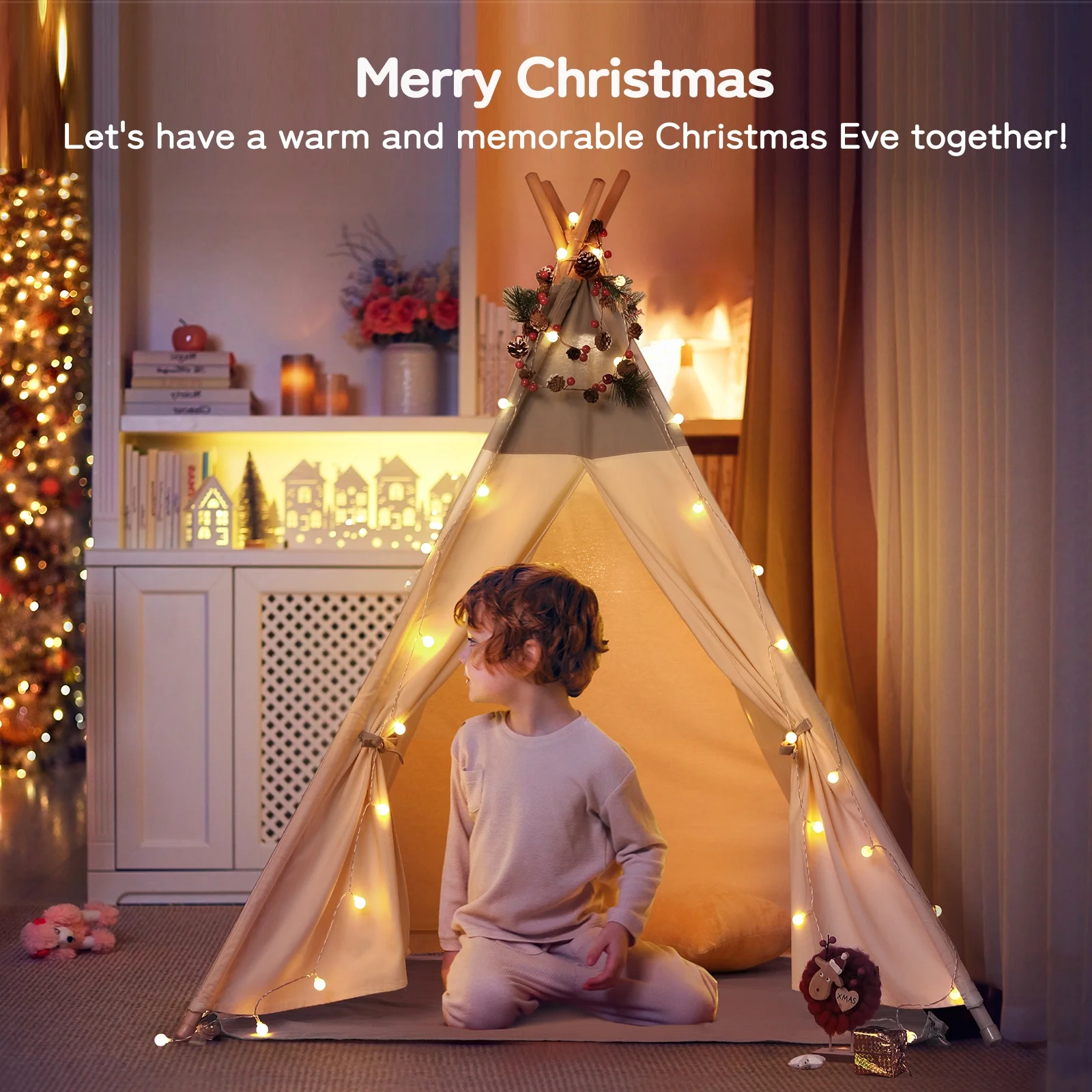 Features: Versatile Playhouse for Endless Fun Roomy Enough: This toddler play tent measures 48″ x 48″ x 59″. Spacious enough to accommodate 2 to 3 toddlers. Reading Corner & Playhouse: Besrey teepee tent has 2 pockets for storing books or small toys. Here children can enjoy books or engage in imaginative play. Inspire Imagination & Creativity: The play tent ignites children’s imagination by providing a dedicated space for creative activities. Indoor & Outdoor Playhouse: Whether at home or outdoors, this teepee tent creates an ideal space for children to play and relax. Ideal Gift for Kids Easy Assembly & Storage: Quick and easy to set up. This tent is also easy to fold if you want to store it away! Festive Accessories: This teepee tent comes with a free floor mat and a 20ft string of LED lights to create a festive atmosphere for kids. Smile Capturer: If you want to witness the look of joy on the faces of your children or grandchildren, this play tent is the perfect choice to capture their hearts on birthdays or holidays like Christmas. Unforgettable Childhood: Whether they are playing, reading or taking a nap, children will cherish the happy childhood days spent in the tent. Safe and Eco-friendly Enhanced Stability: Upgraded threaded poles and connectors are more easier to assemble. Tent stabilizer plus four rubber caps enhance the stability of the tent. Eco-friendly Materials: Besrey teepee tents are handmade from cotton canvas and finely polished reinforced pine wood, which are formaldehyde-free. Certified Safety: Besrey always pays attention to the composition, quality and safety of the materials. All materials used are eco-friendly and safe, meeting ASTM and CPSIA certifications to ensure children’s safety and health. What’s in the box: 1x Besrey Kids Teepee Tent 16x Pine Poles 12x Connection Tubes 1x Floor Mat 1x String Lights (20ft) 4x Silicone Caps 1x Tent Stabilizer 1x User Manual NOTE: Other decorations in the picture are not included. Please refer to the package received. Due to packaging and shipping constraints, the fabric of the tent may be wrinkled. It is recommended to iron the tent with a low-heat steam iron before use. All measurements are taken manually and may be subject to slight inaccuracies. Besrey offers a 2-year limited warranty. If you encounter any problems regarding the product, please contact us at (888) 310-6255.