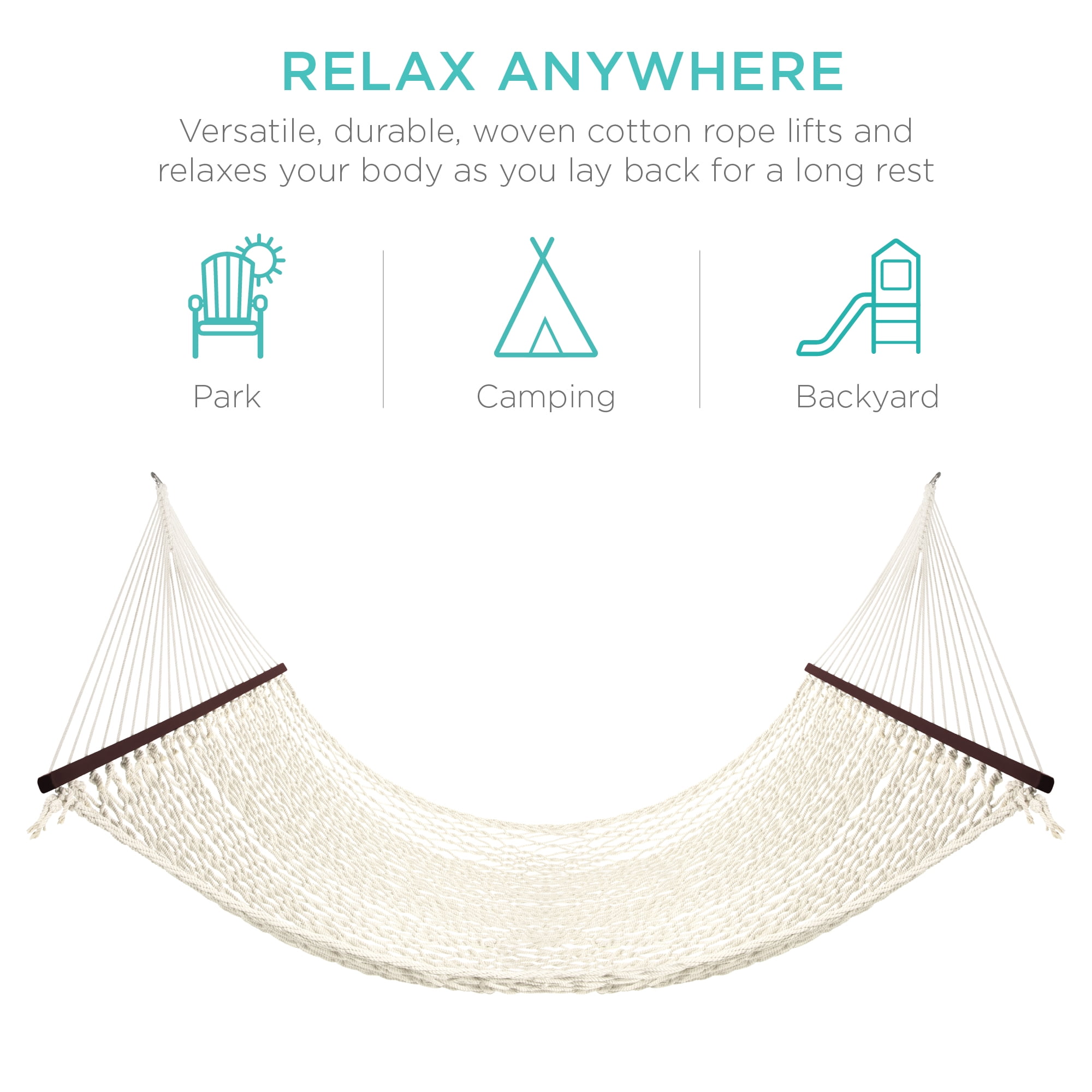 Best Choice Products 2-Person Woven Cotton Rope Double Hammock for Backyard w/ Spreader Bars, Carrying Case