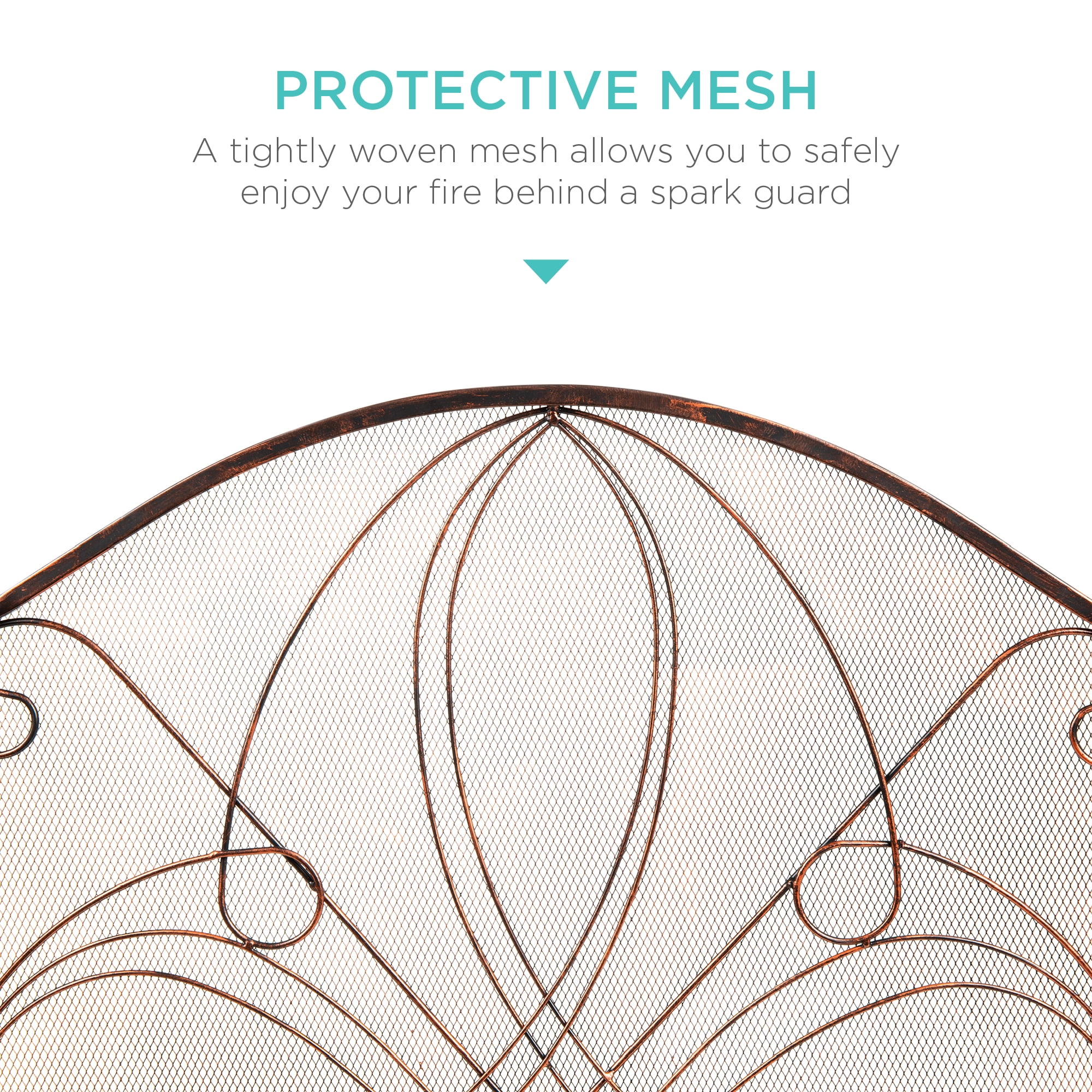 ELEGANT FINISH: Iron scroll with an heat-resistant finish and textured add a rustic touch of class to your fireplace PROTECTIVE MESH: Tightly woven wrought iron mesh provides an easy-cleaning surface and a see-through barrier to trap sparks and embers QUALITY CONSTRUCTION: Wrought iron bars connected by iron mesh and welded hinges create a solid construction that won’t break down LOW-HEAT HANDLES: A set of handles on the outer edges are built to protect your hands and allow you to quickly move the screen and tend your fire FUNCTIONAL STYLE: A three-part folding design allows for easy storage while the open mesh design and filigree prevent stains and heat build-up; OVERALL DIMENSIONS: 55.5″(L) x .50″(Thick) x 33″(H)