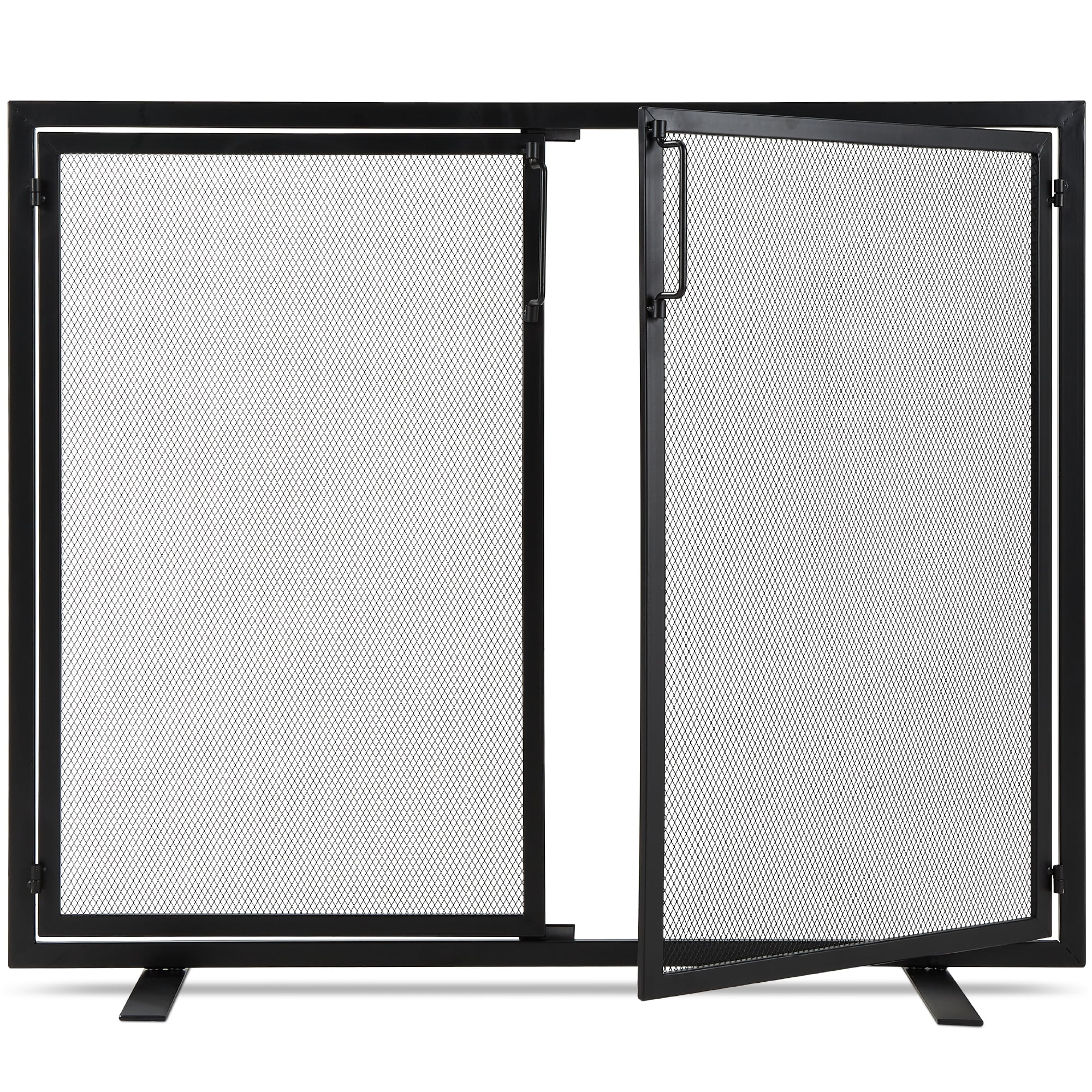 Enjoy an accessory that is functional in the winter and fashionable all year round! Take hold of the easy-grab handles on this fireplace screen and enhance your hearth with a clean, modern addition made with solid iron decorations. A tightly woven mesh allows you to enjoy your fire behind a spark guard. Two magnetic doors protect your home from sparks while providing easy access to tend your fire! Heavy-duty, powder-coated iron has welded hinges, while perpendicular feet provide exceptional stability to keep the screen in place. Best of all, assembly is a breeze! Simply screw the feet on for an easy minimal assembly in under 10 minutes!