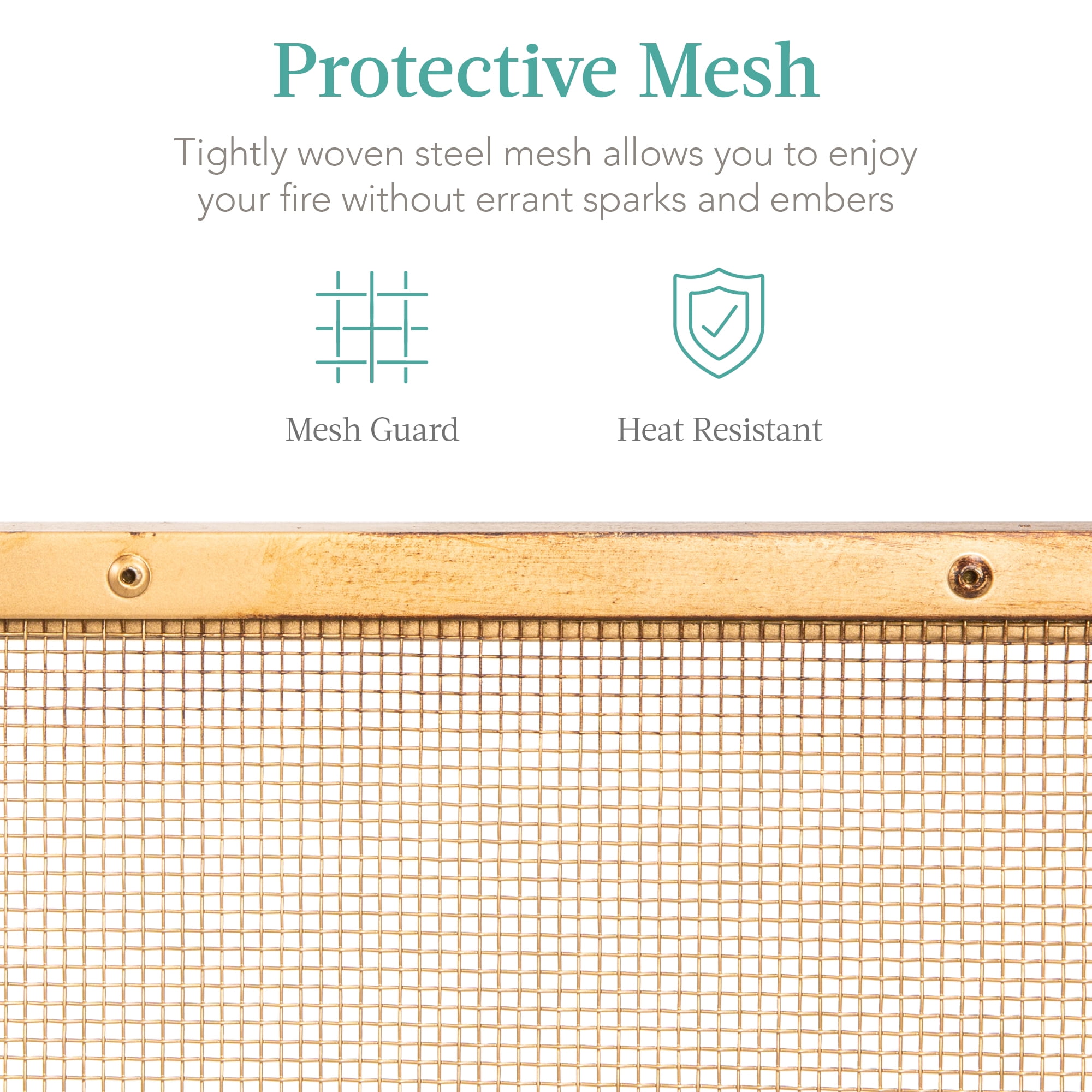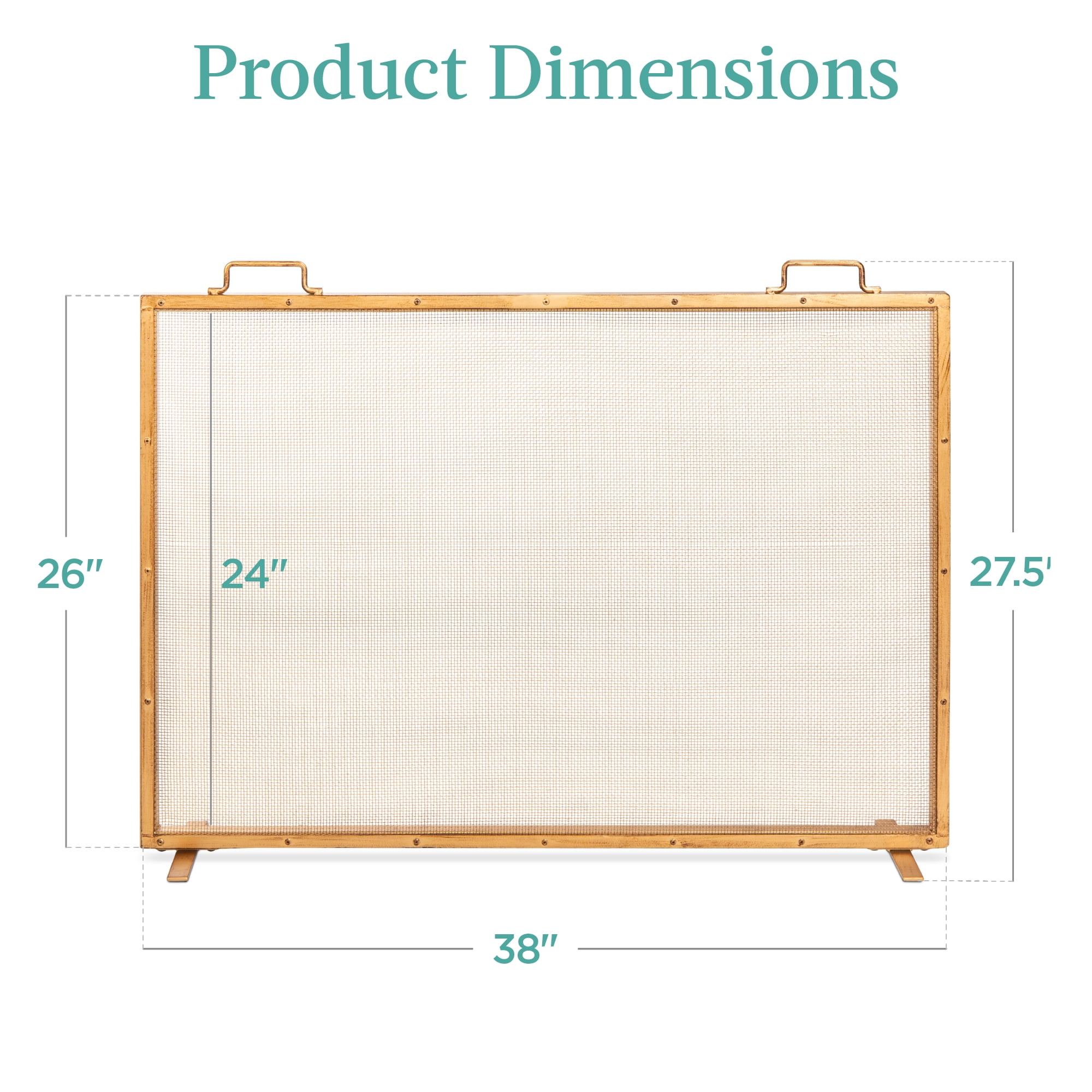 Best Choice Products 38x27in Single Panel Fireplace Screen Handcrafted Steel Mesh Spark Guard w/ Handles – Antique Gold