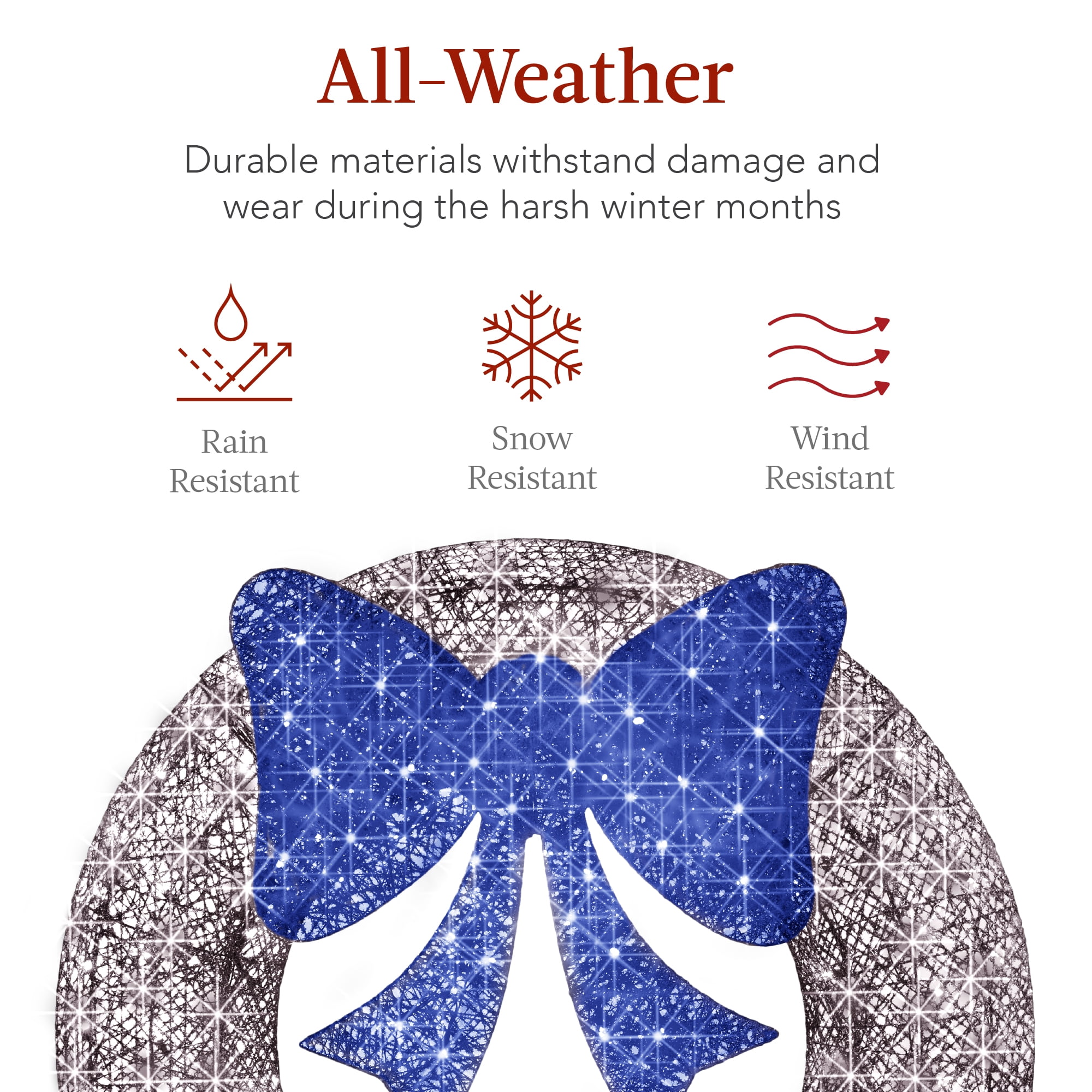 Best Choice Products 60in Pre-Lit Outdoor Christmas Wreath, LED Metal Holiday Decor w/ 206 Lights, Bow – Silver/Blue